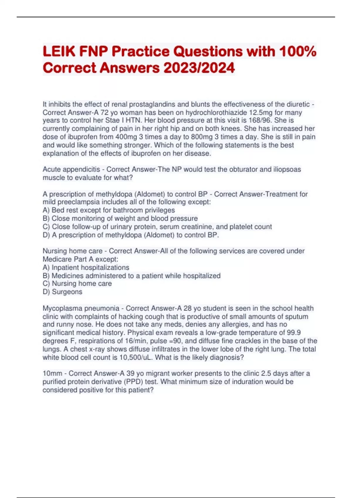 LEIK FNP Practice Questions with 100% Correct Answers 2023/2024