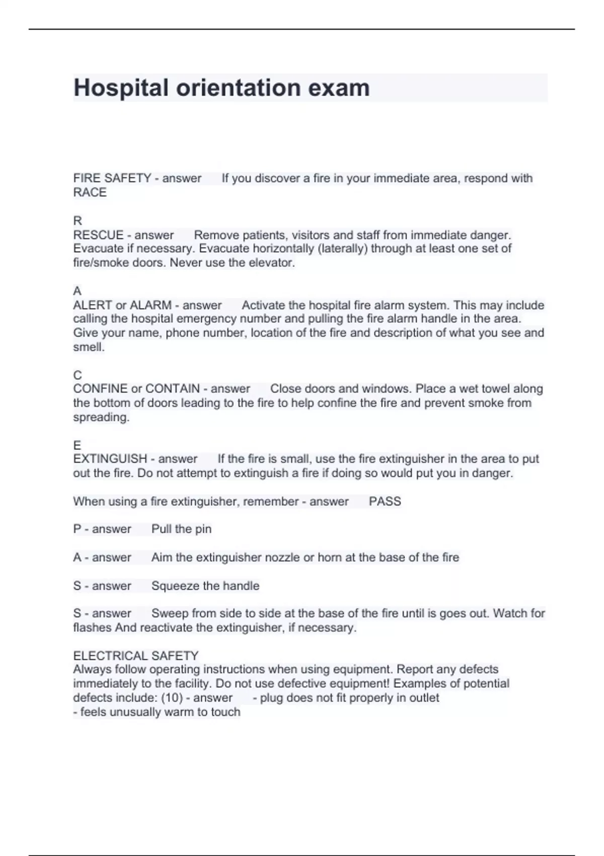 Hospital orientation exam Questions and Answers Graded A+