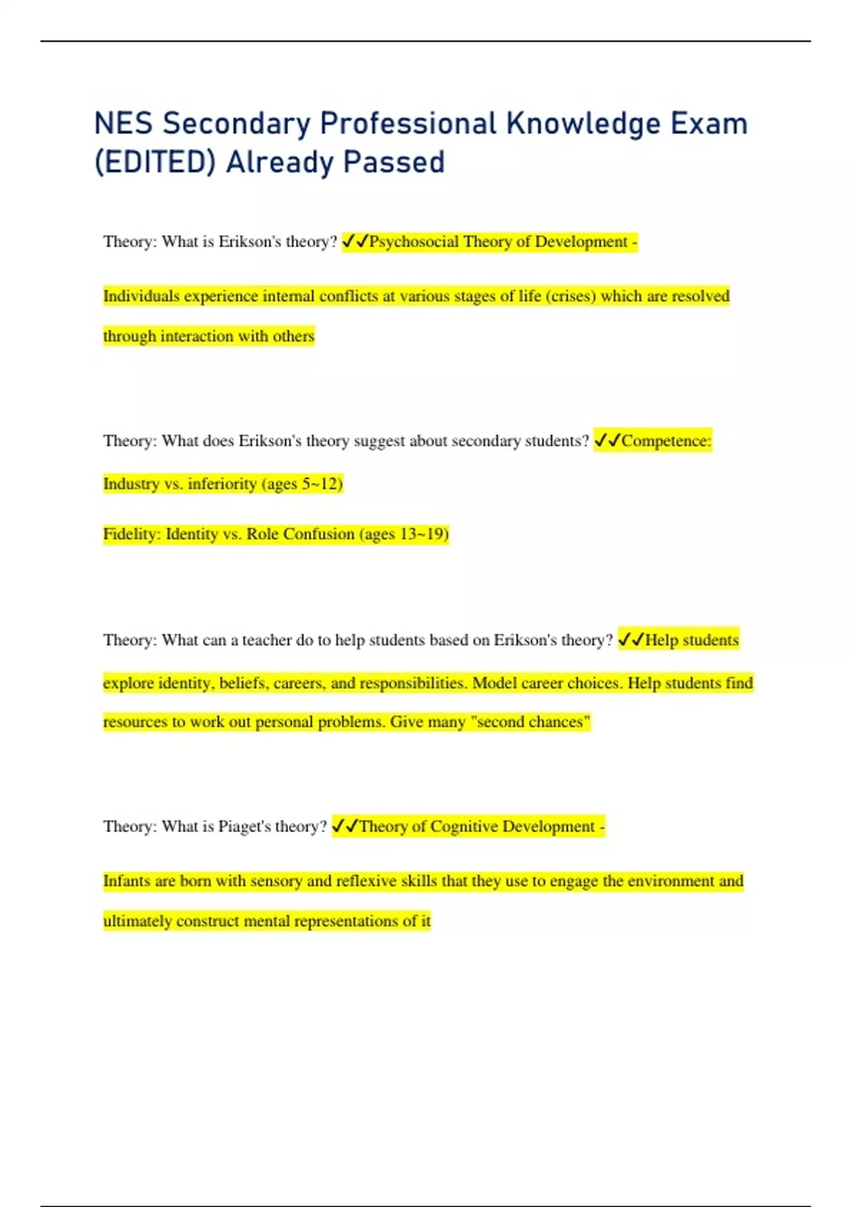 NES Secondary Professional Knowledge Exam (EDITED) Already Passed