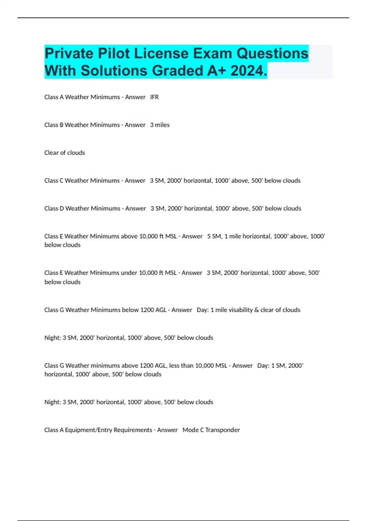 Private Pilot License Exam Questions With Solutions Graded A+ 2024.