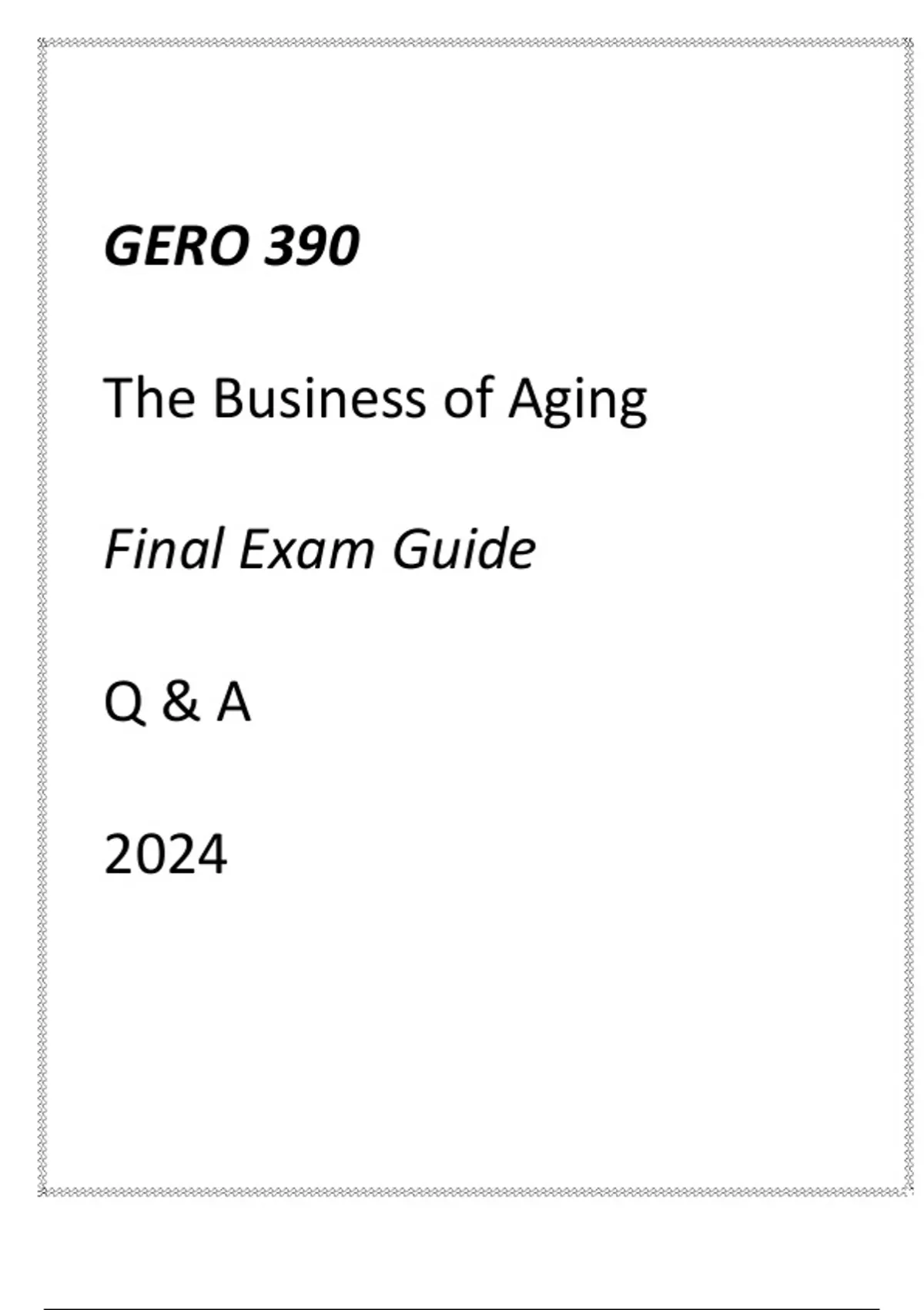 (UMGC) GERO 390 The Business of Aging Final Exam Guide Q & A 2024.(UMGC) GERO 390 The Business of Aging Final Exam Guide Q & A 2024.(UMGC) GERO 390 The Business of Aging Final Exam Guide Q & A 2024.