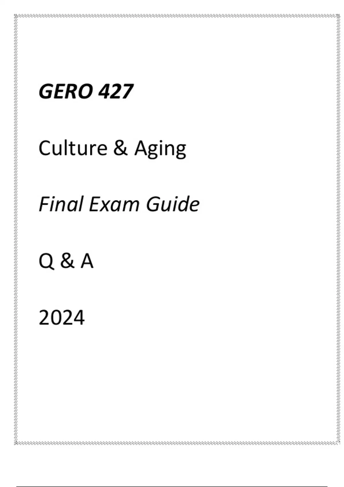 (UMGC) GERO 427 Culture & Aging Final Exam Guide Q & A 2024.(UMGC) GERO 427 Culture & Aging Final Exam Guide Q & A 2024.(UMGC) GERO 427 Culture & Aging Final Exam Guide Q & A 2024.