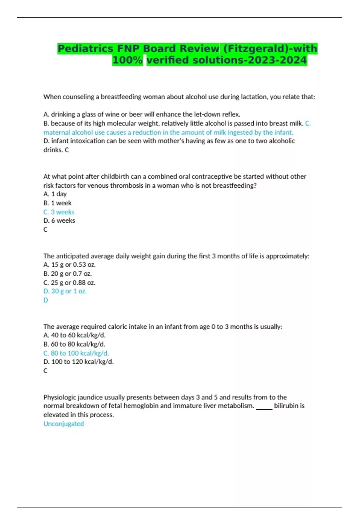 pediatrics fnp board review fitzgerald with 100