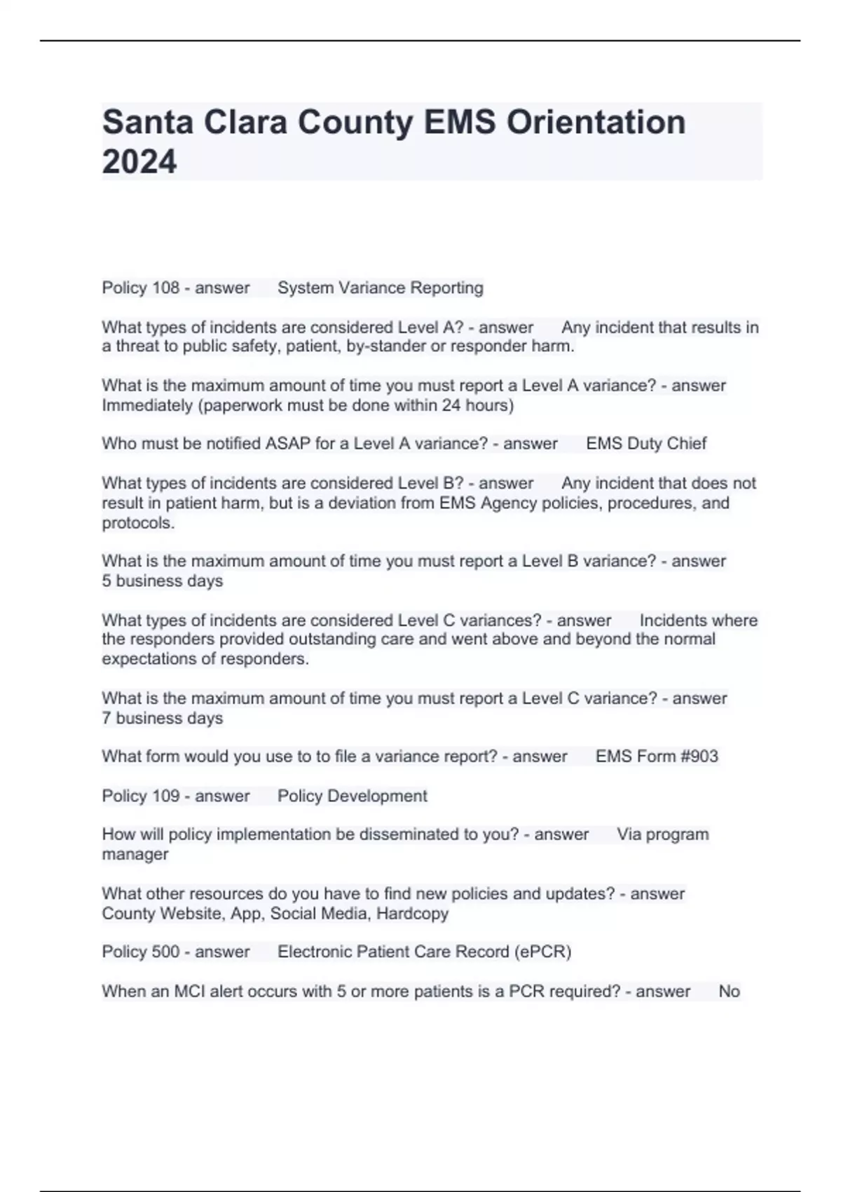 Hospital Orientation Questions and Answers 2024