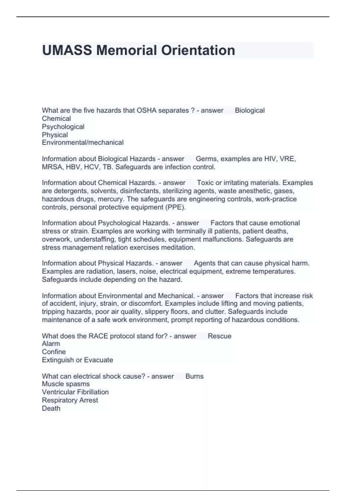 Hospital Orientation Questions with Accurate Answers 2024