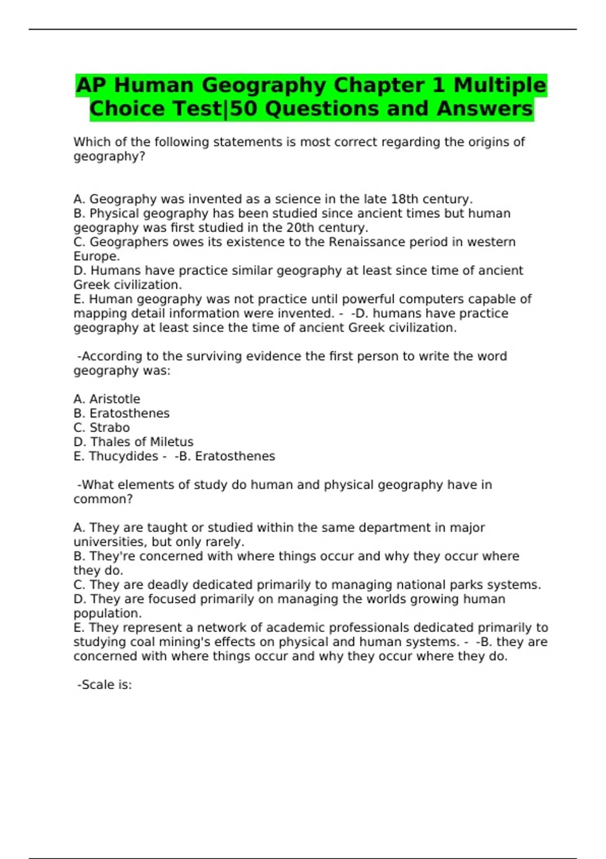 AP Human Geography Chapter 1 Multiple Choice Test|50 Questions and Answers