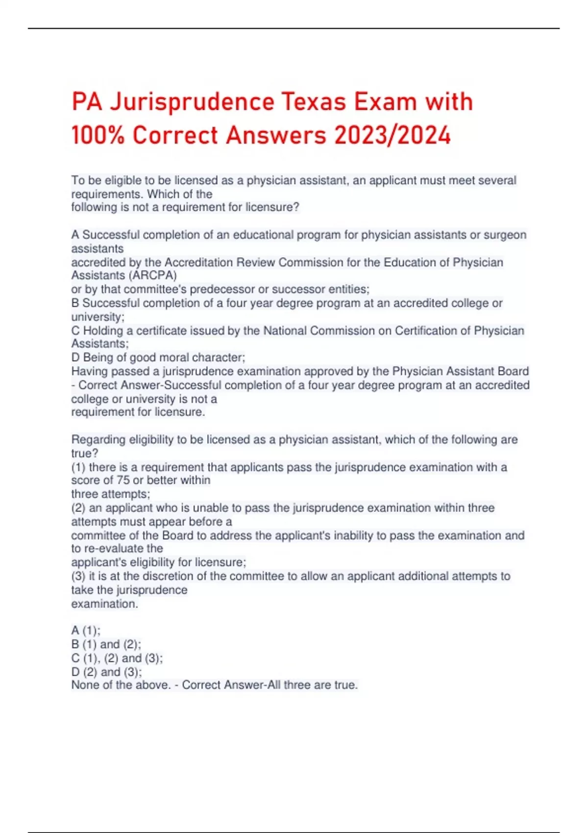 PA Jurisprudence Texas Exam with 100% Correct Answers 2023/2024