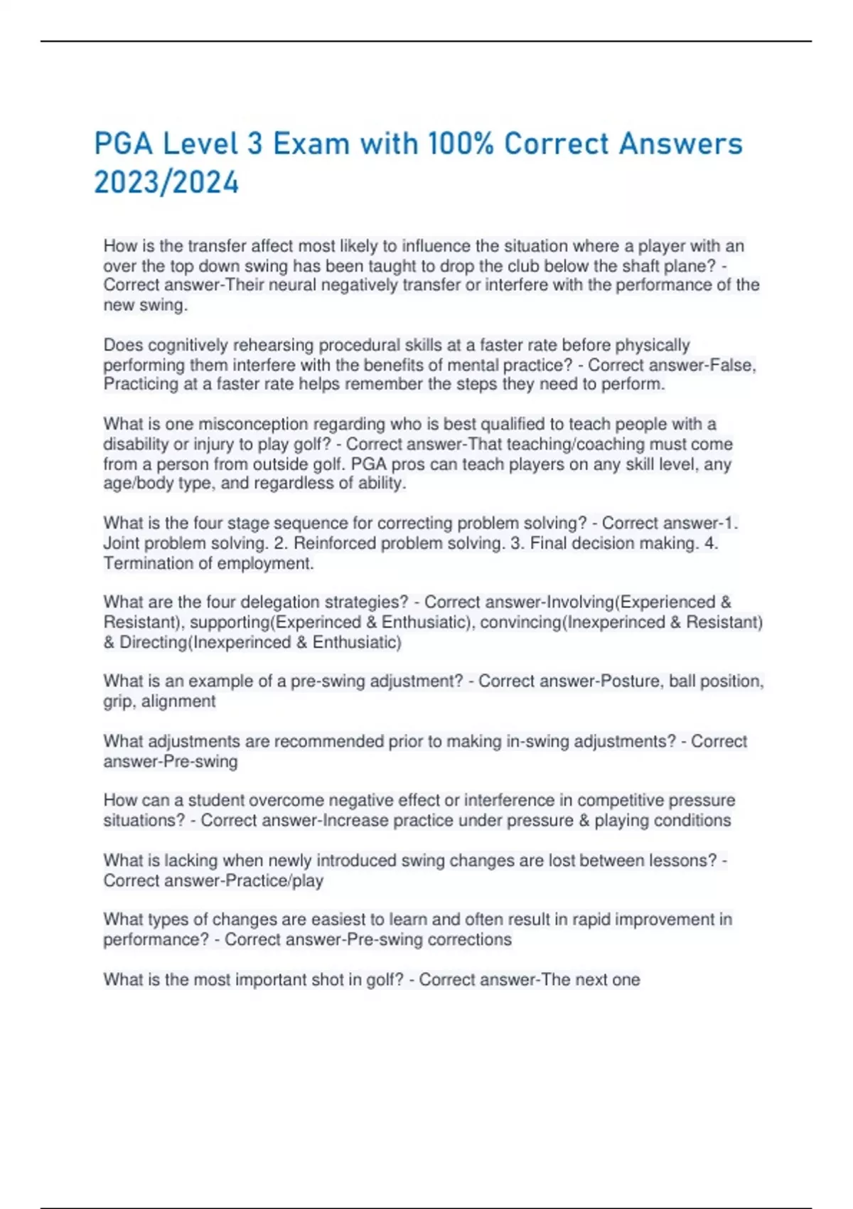 PGA Level 3 Exam with 100% Correct Answers 2023/2024