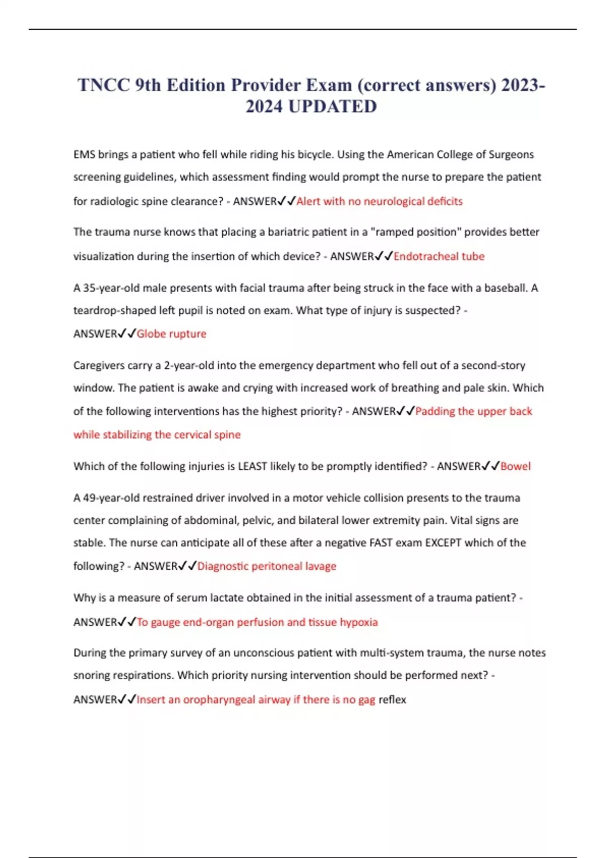 TNCC 9th Edition Provider Exam (correct answers) UPDATED