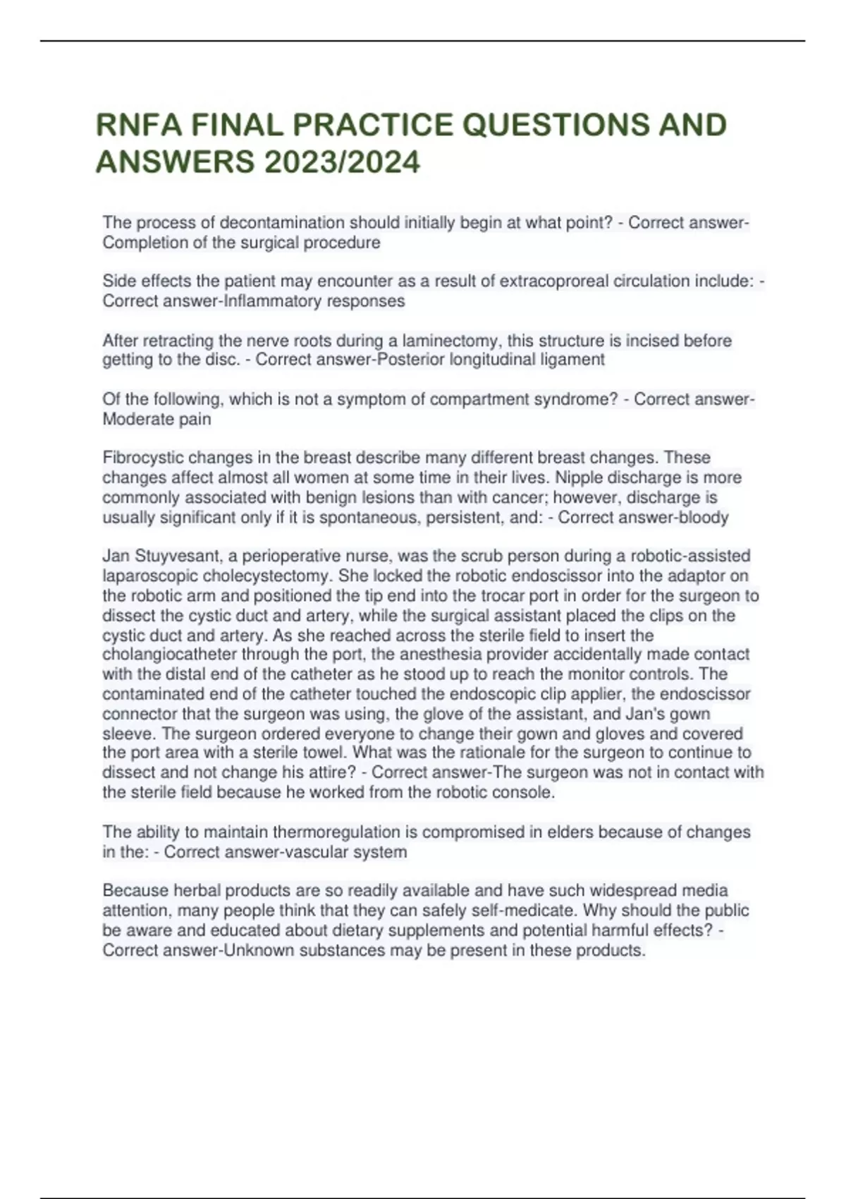 RNFA FINAL PRACTICE QUESTIONS AND ANSWERS 2023/2024