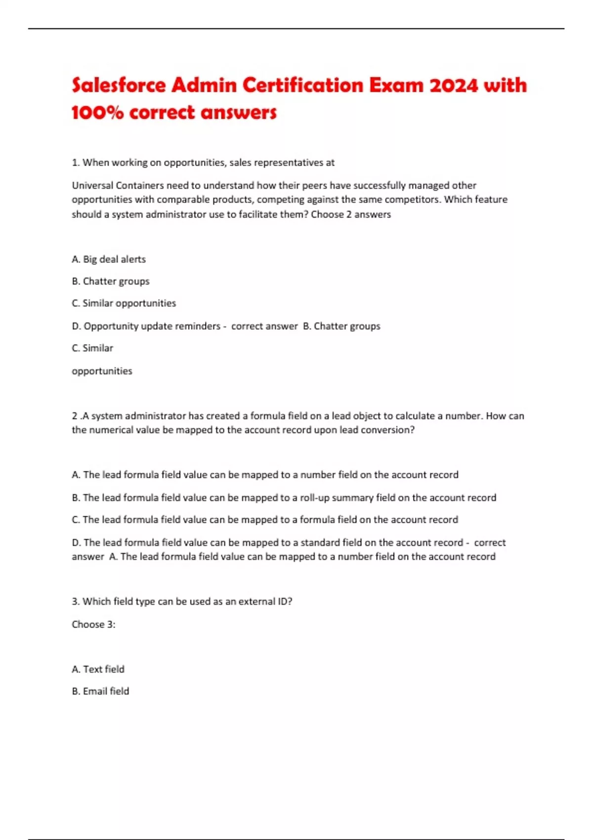 Salesforce Admin Certification Exam 2024 with 100% correct answer