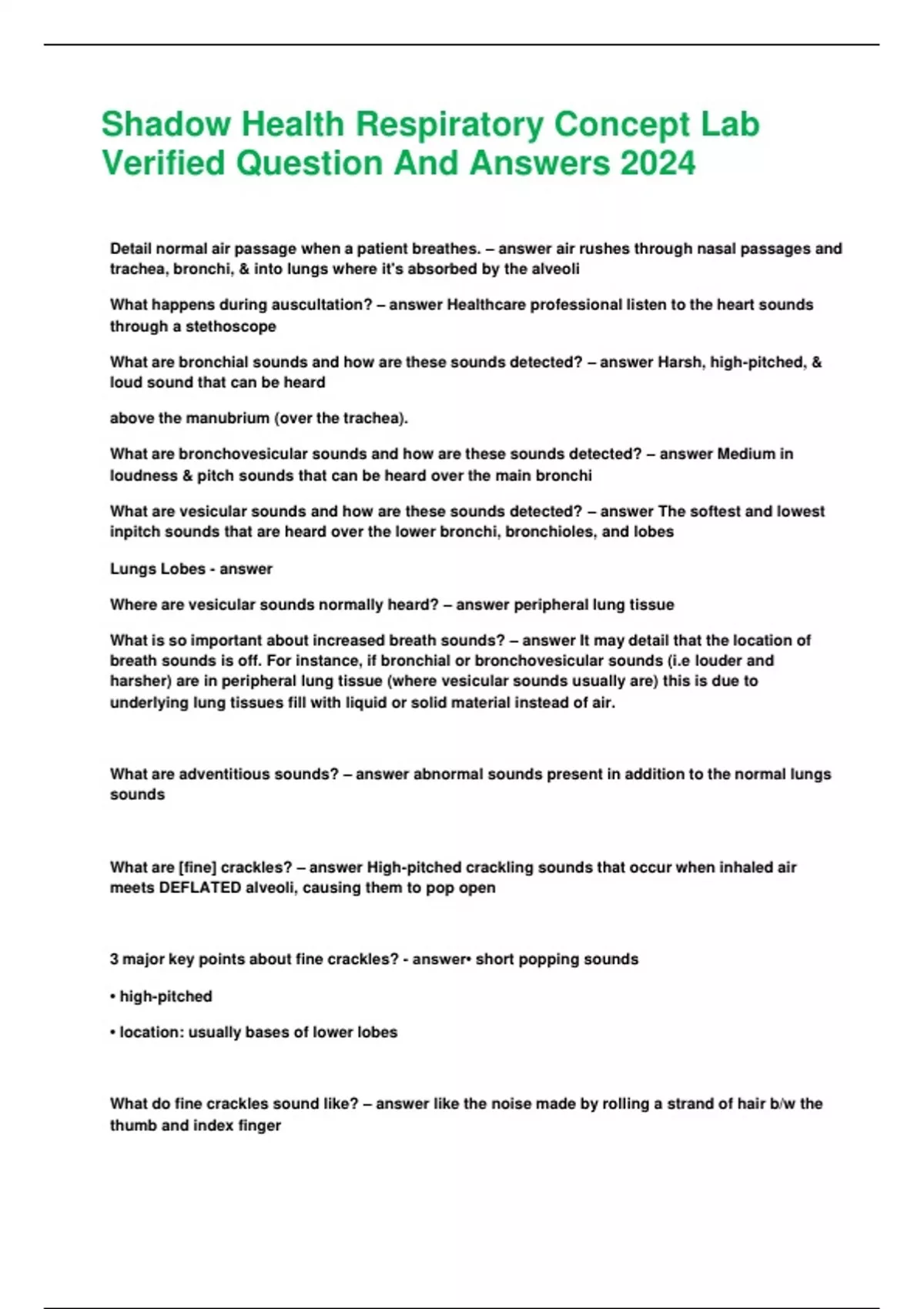 Shadow Health Respiratory Concept Lab Veified Que