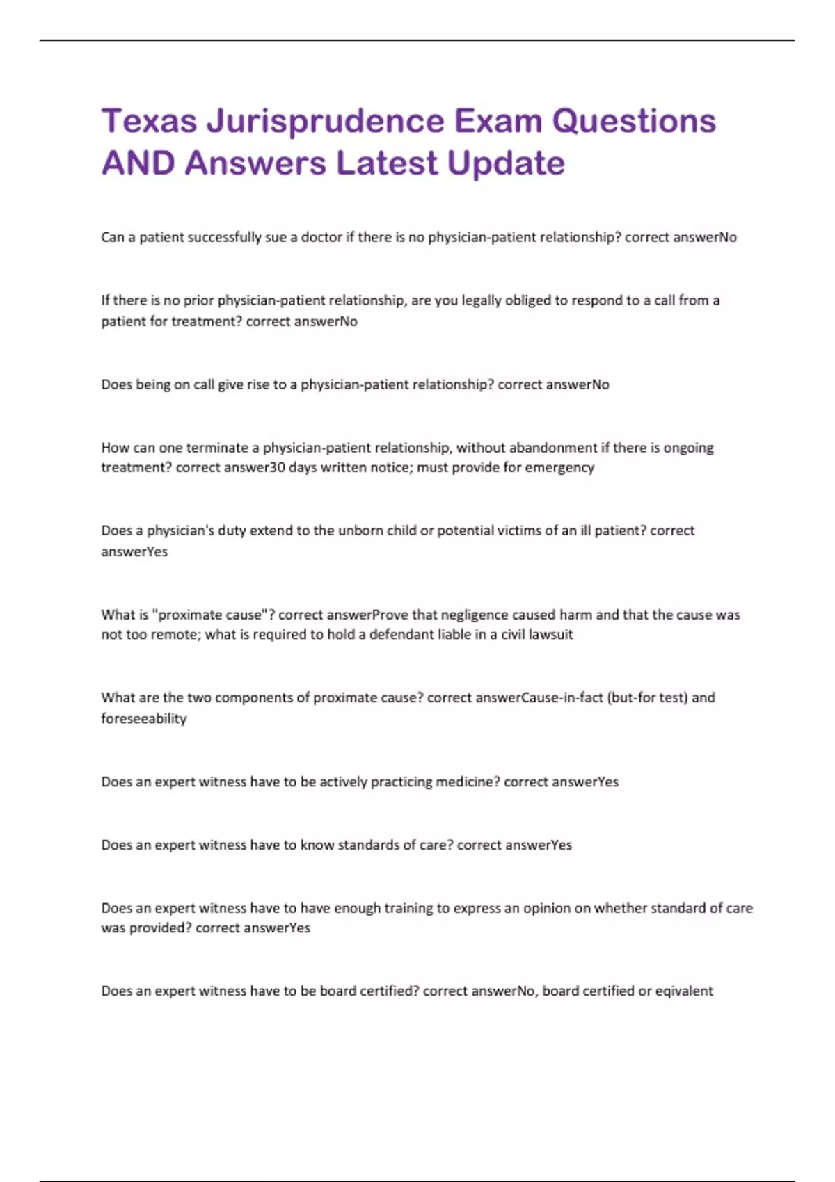 Texas Jurisprudence Exa Qustions AND Aswers La