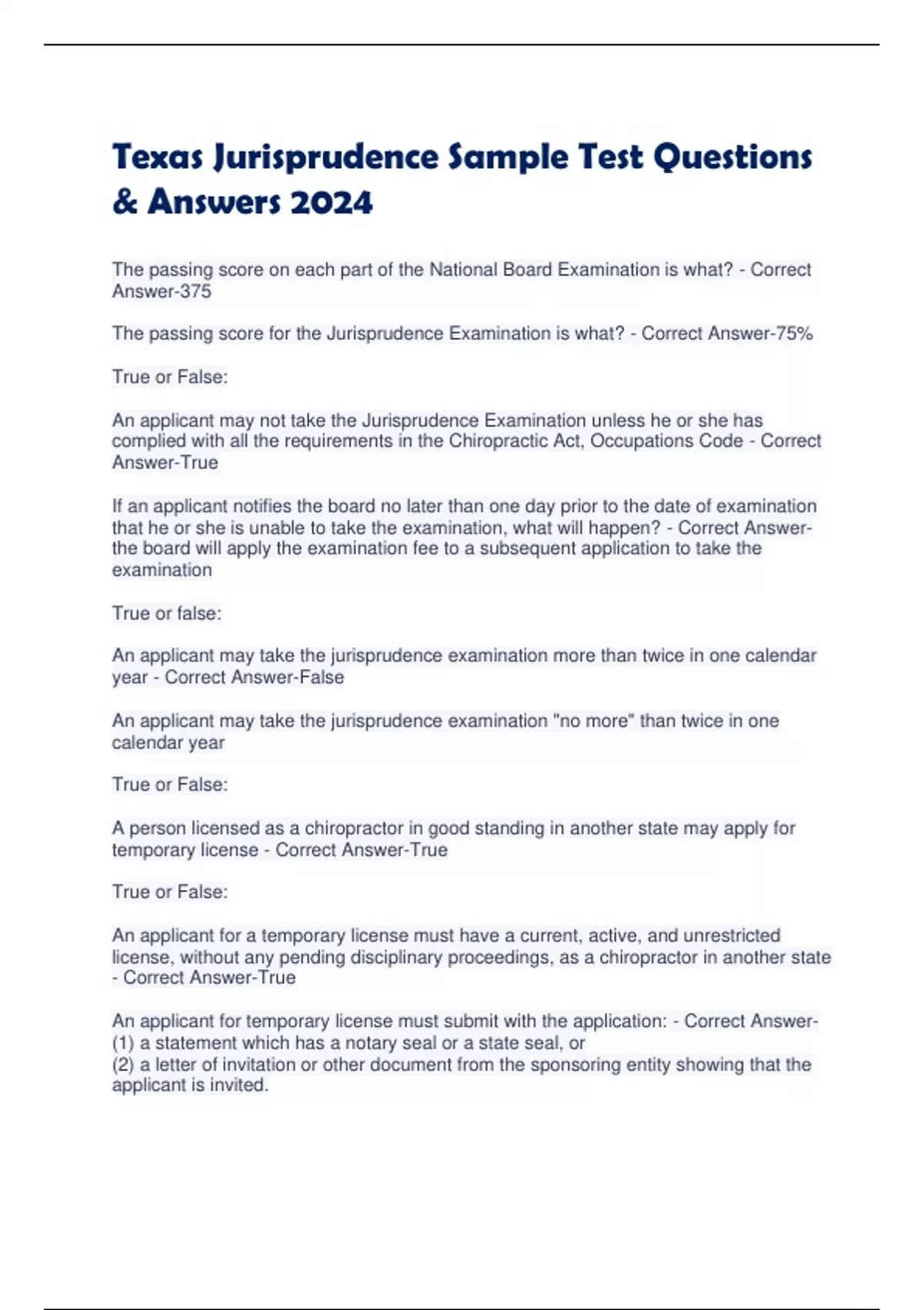 - Texas Jurisprudence Sample Tst Qustions & Answe