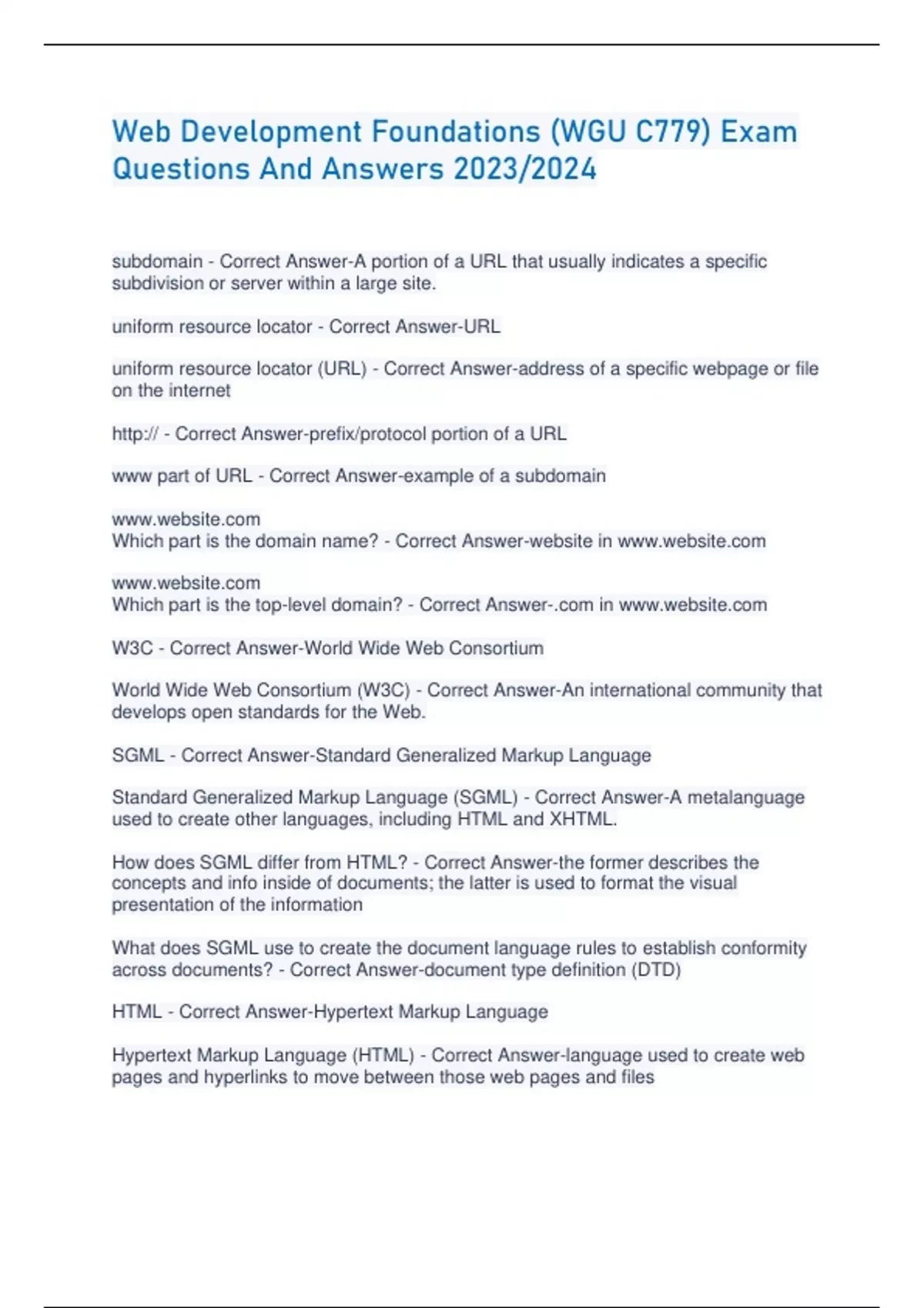 Web Development Foundations (WGU C779) Exam Questions And Answers 2023/2024