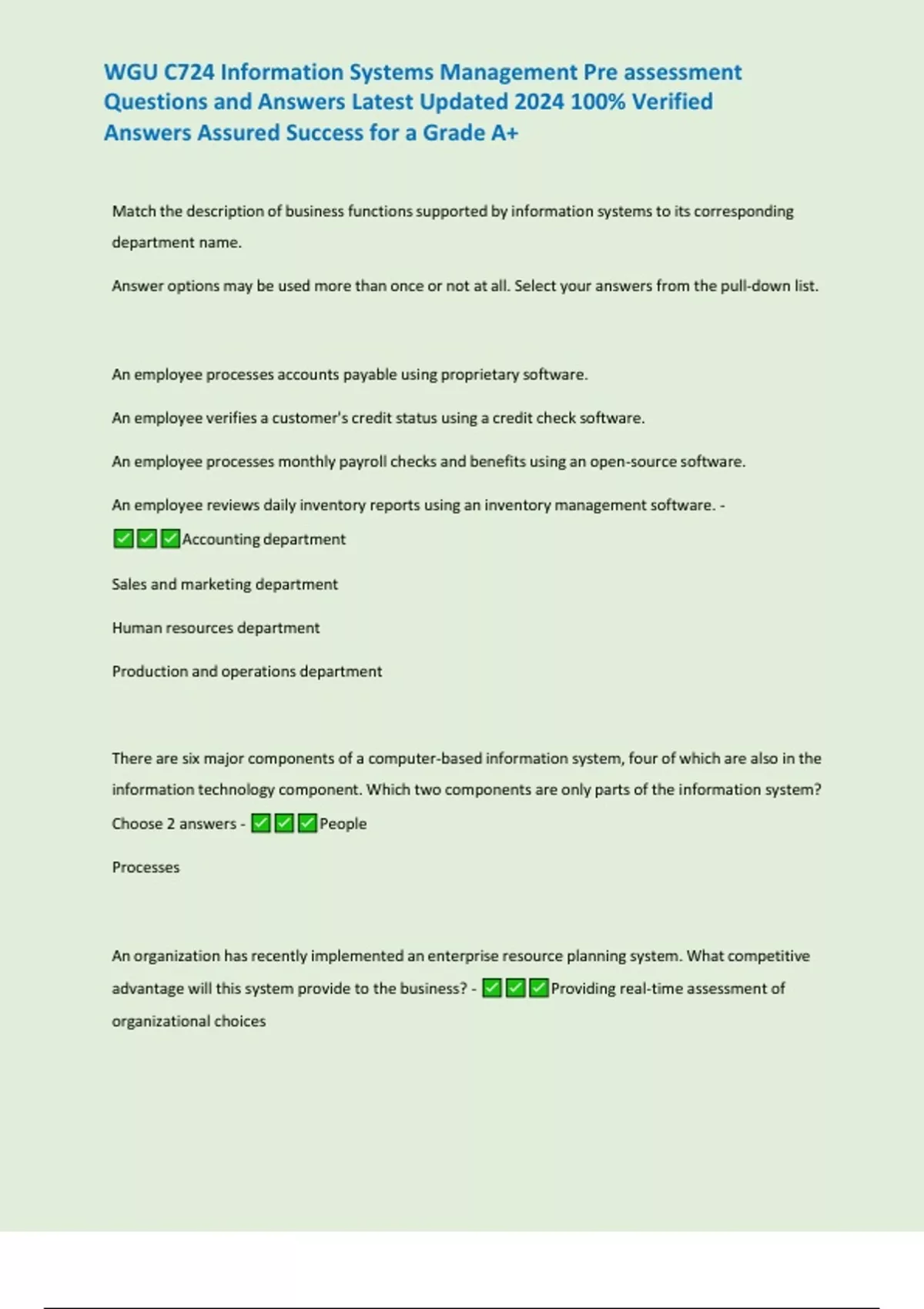 WGU C724 Information Systems Management Pre assessment Questions and Answers Latest Updated 2024 100% Verified Answers Assured Success for a Grade A+