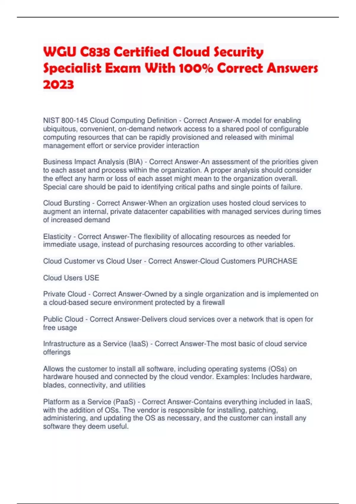WGU C838 Certified Cloud Security Specialist Exam With 100% Correct Answers 2023
