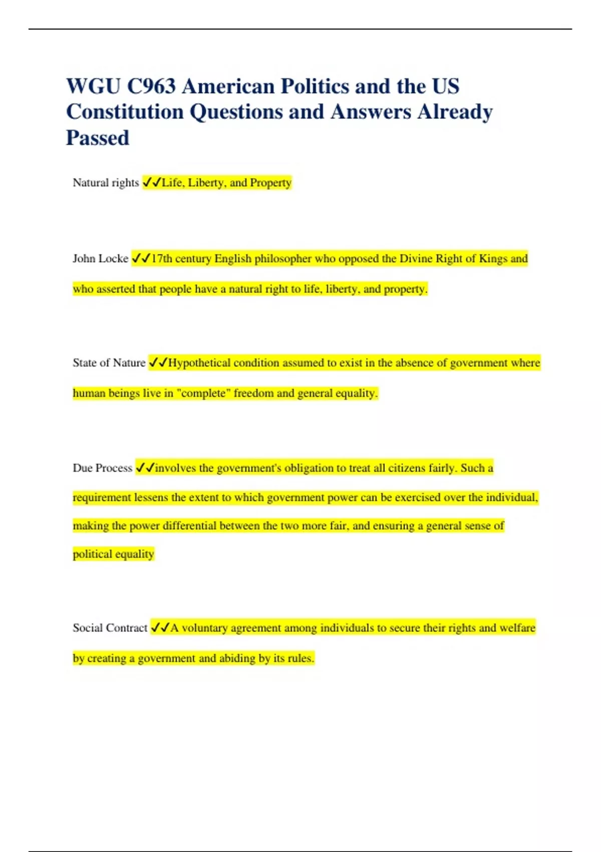 WGU C963 American Politics and the US Constitution Questions and Answers Already Passed
