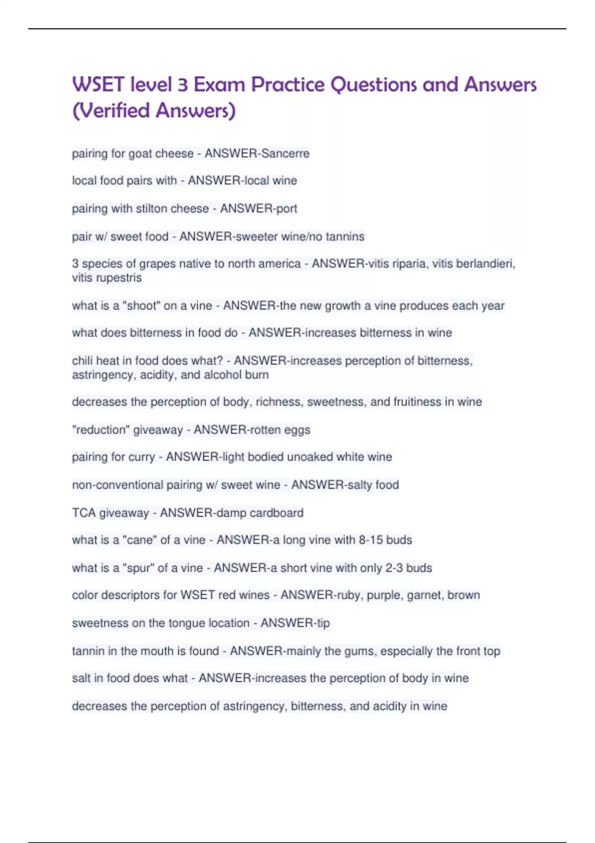 WSET level 3 Exam Practice Questions and Answers (Verified Answers)