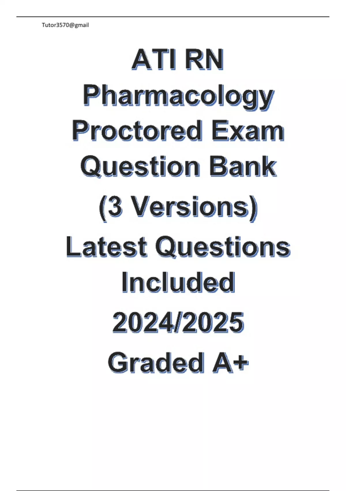 ATI RN Pharmacology Proctored Exam Question Bank (3 Versions) Latest Questions Included 2024/2025 Graded A+