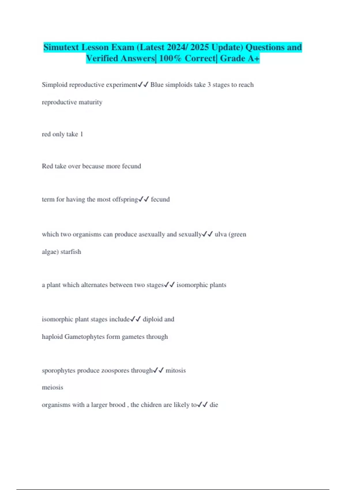 Simutext Lesson Exam (Latest 2024/ 2025 Update) Questions and Verified Answers| 100% Correct| Grade A+
