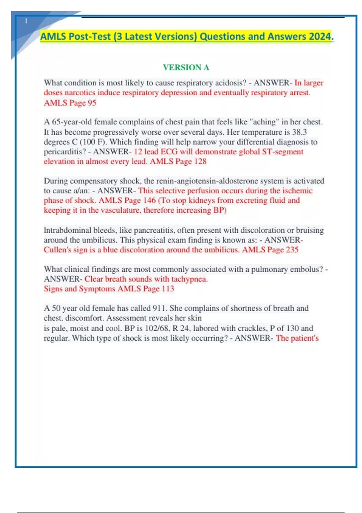 AMLS Post-Test (3 Latest Versions) Questions and Answers 2024.