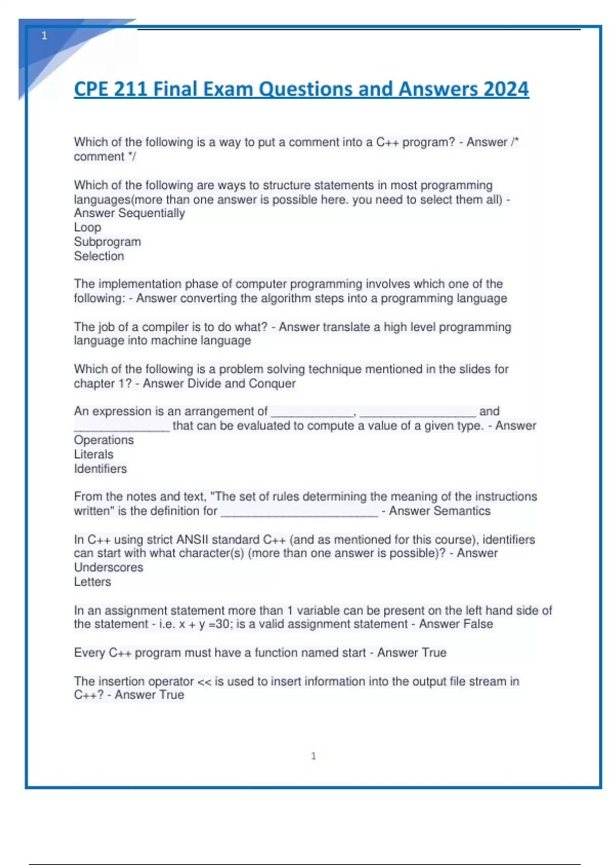 cpe 211 final exam questions and answers 2024