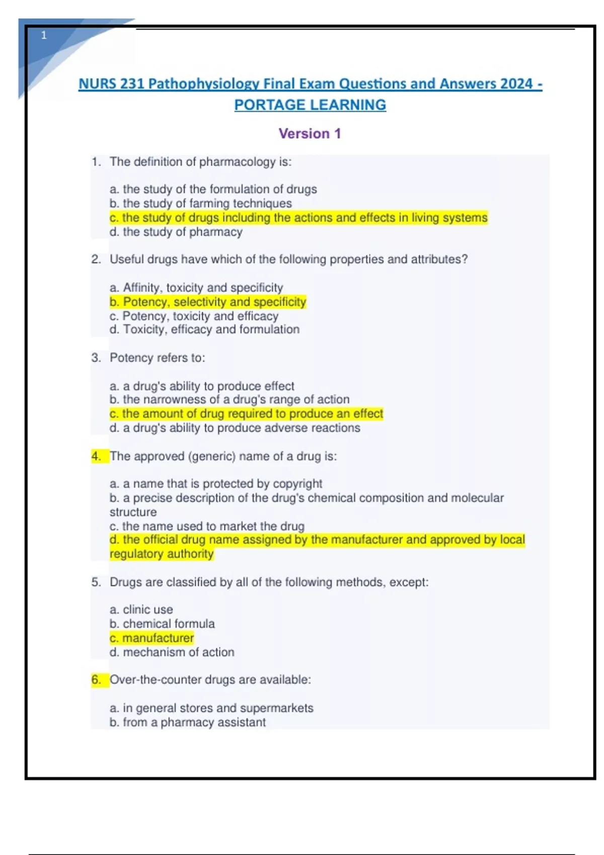 NURS 231 Pathophysiology Final Exam Questions and Answers 2024 - PORTAGE LEARNING