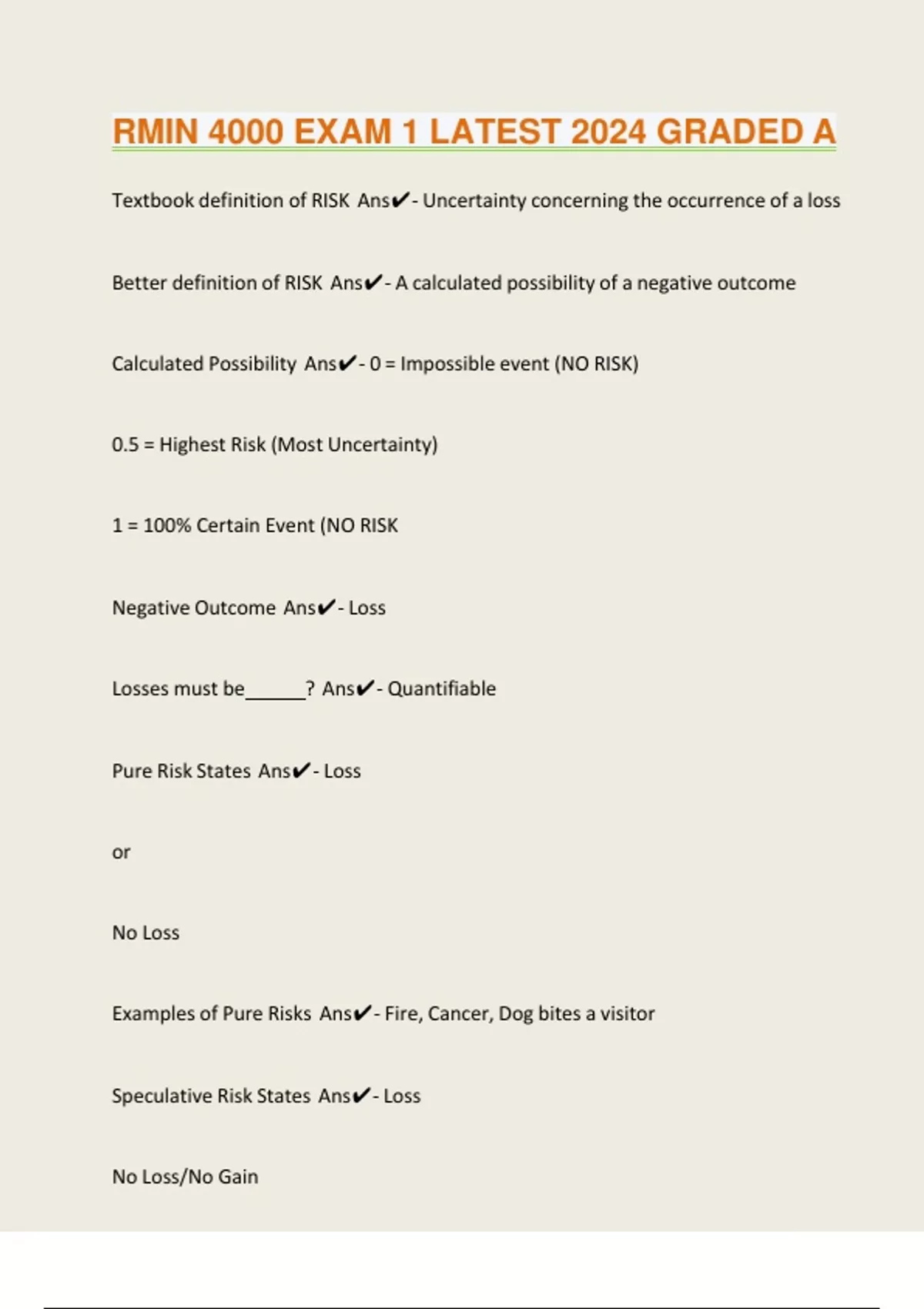 RMIN 4000 EXAM 1 LATEST 2024 GRADED A