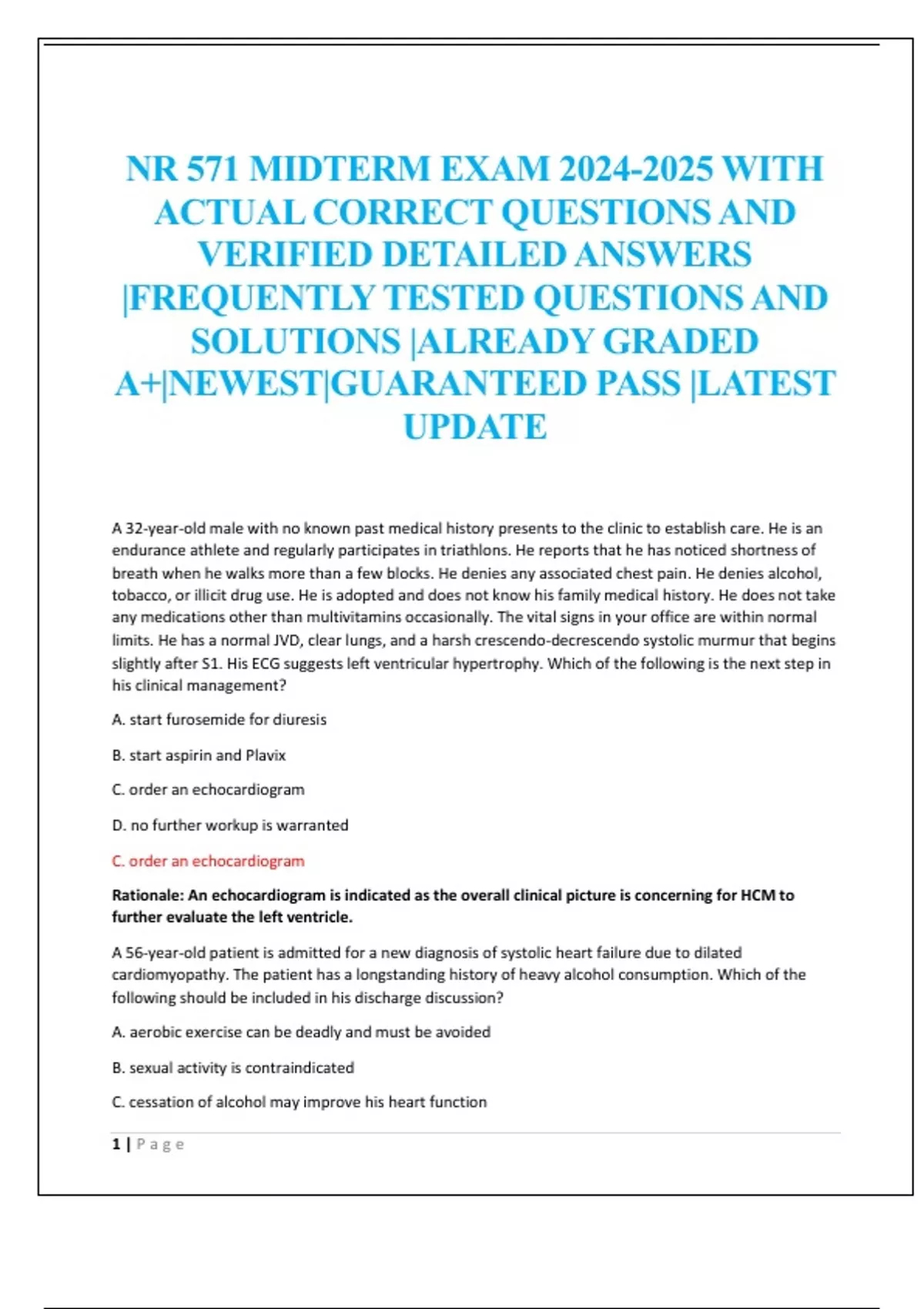 NR 571 MIDTERM EXAM WITH ACTUAL CORRECT QUESTIONS AND VERIFIED DETAILED ANSWERS |FREQUENTLY TESTED QUESTIONS AND SOLUTIONS |ALREADY GRADED A+|NEWEST|GUARANTEED PASS |LATEST UPDATE