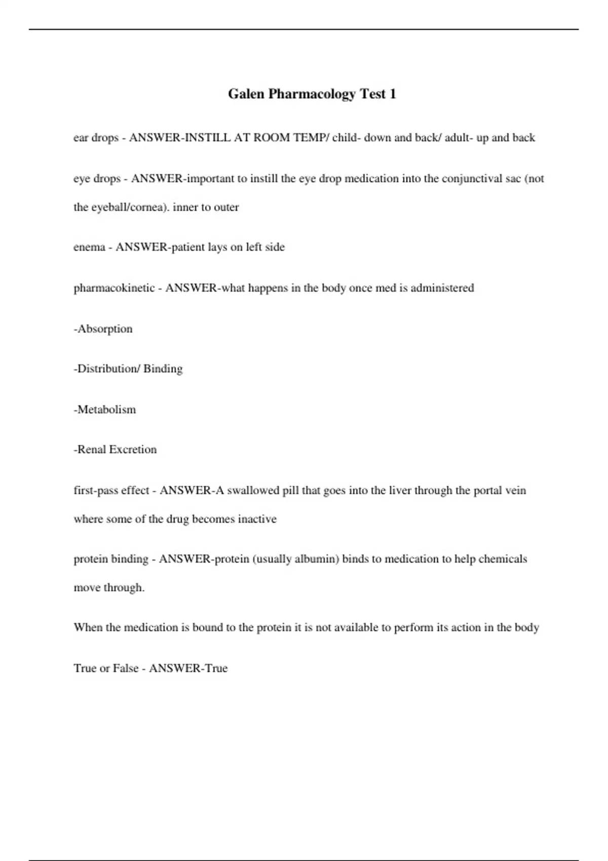 Galen Pharmacology Test 1