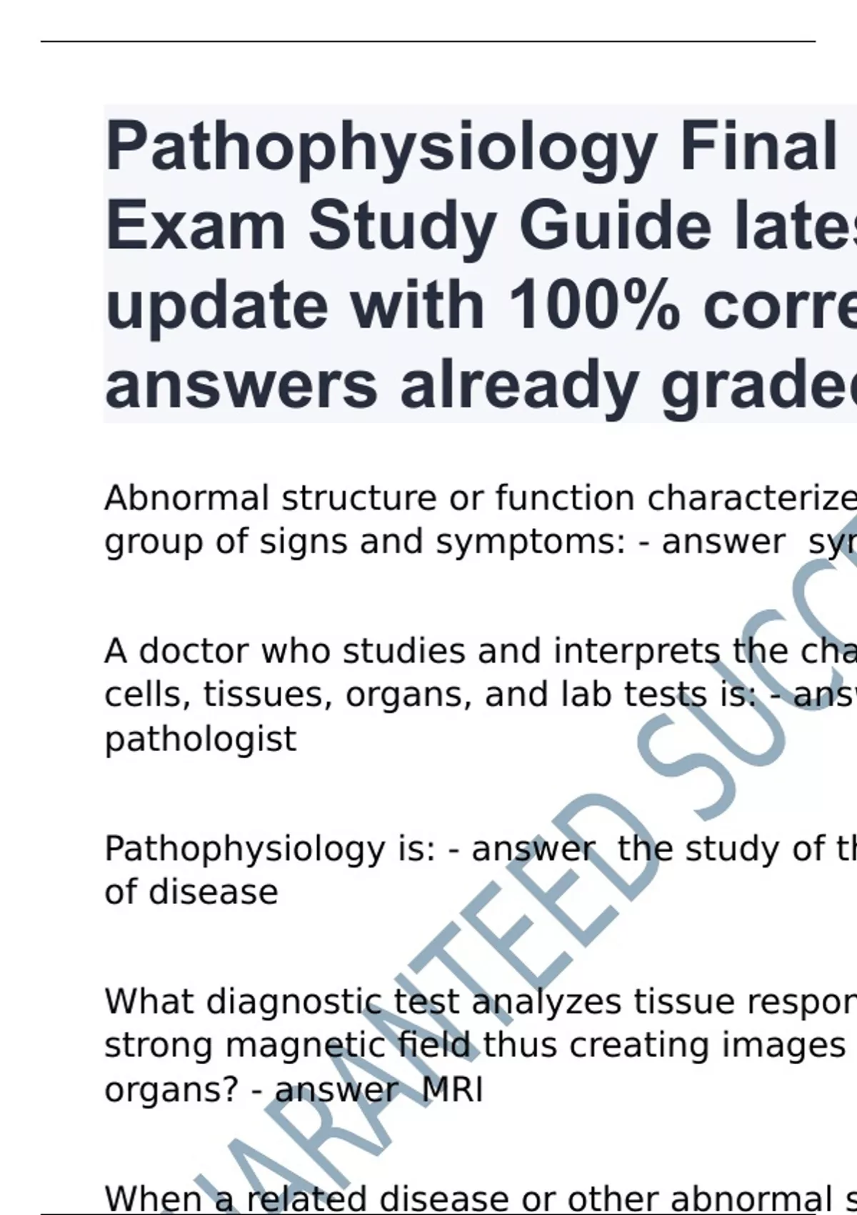Pathophysiology Final Exam Study Guide latest update with 100% correct answers already graded A+