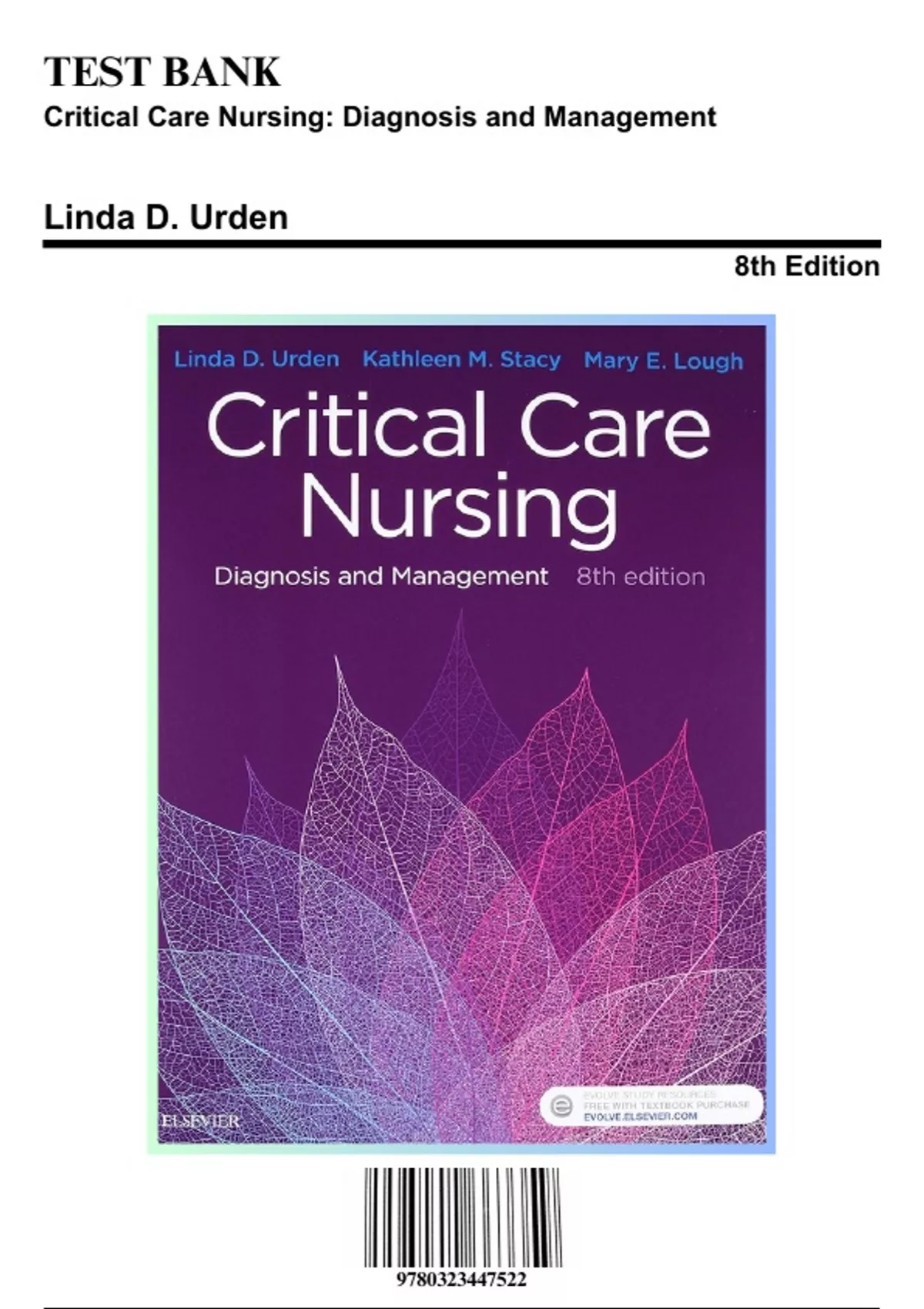 Test Bank for Critical Care Nursing: Diagnosis and Management, 8th Edition by Urden, 9780323447522, Covering Chapters 1-41 | Includes Rationales