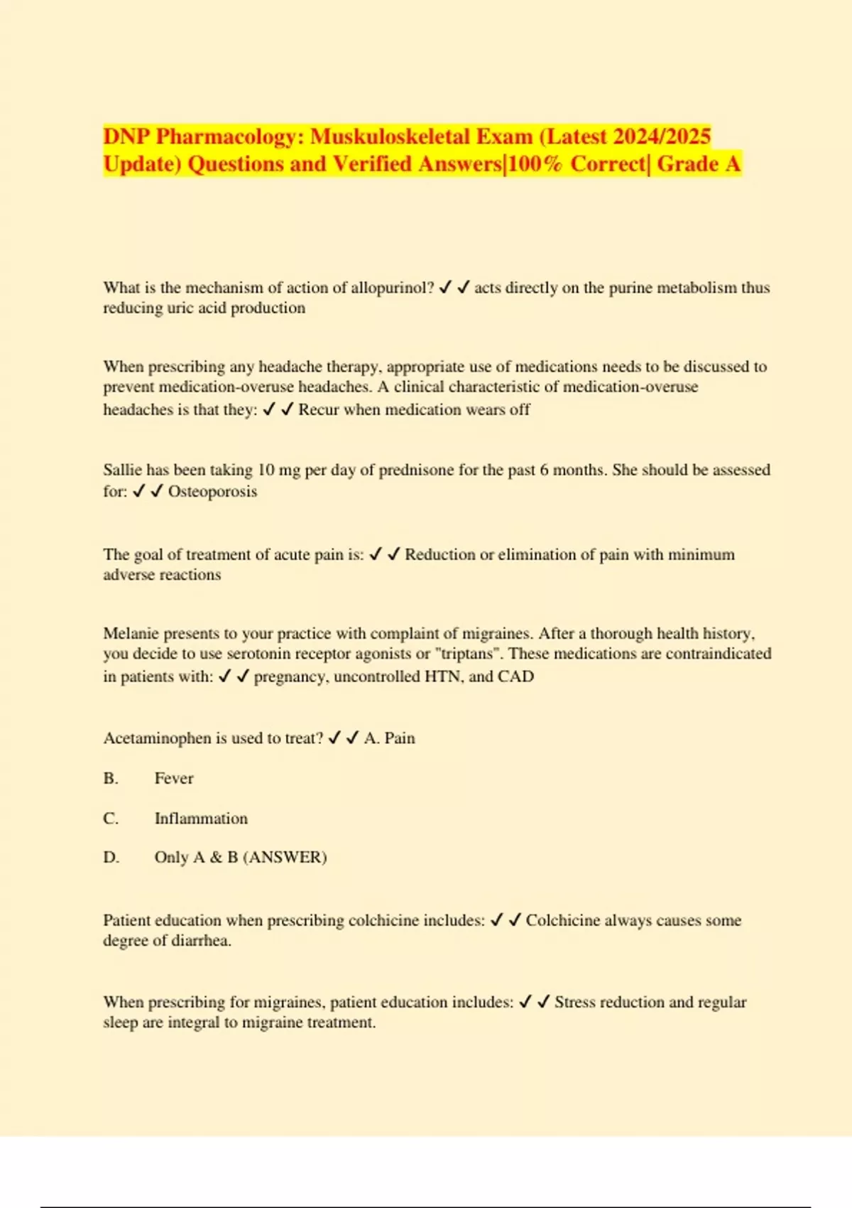 DNP Pharmacology: Muskuloskeletal Exam (Latest 2024/2025 Update) Questions and Verified Answers|100% Correct| Grade A