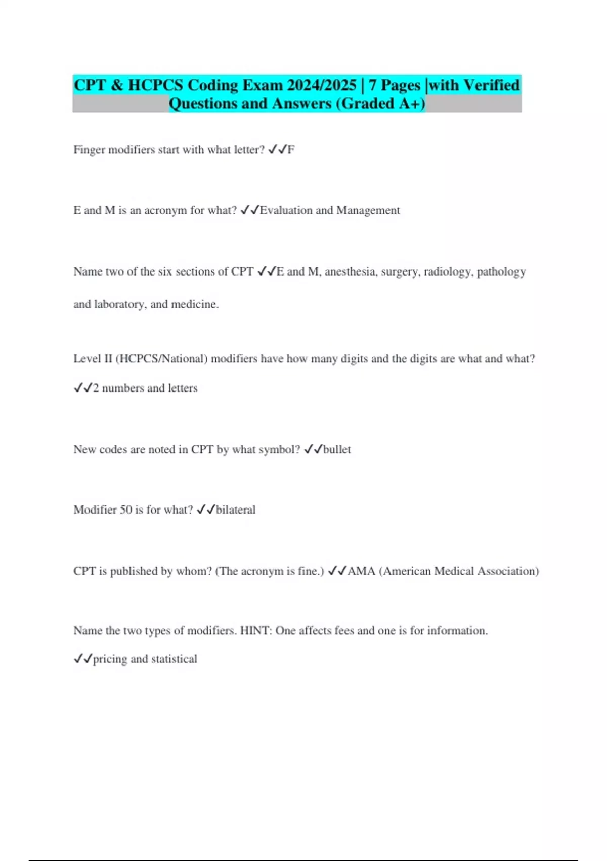 CPT & HCPCS Coding Exam 2024/2025 | 7 Pages |with Verified Questions and Answers (Graded A+)