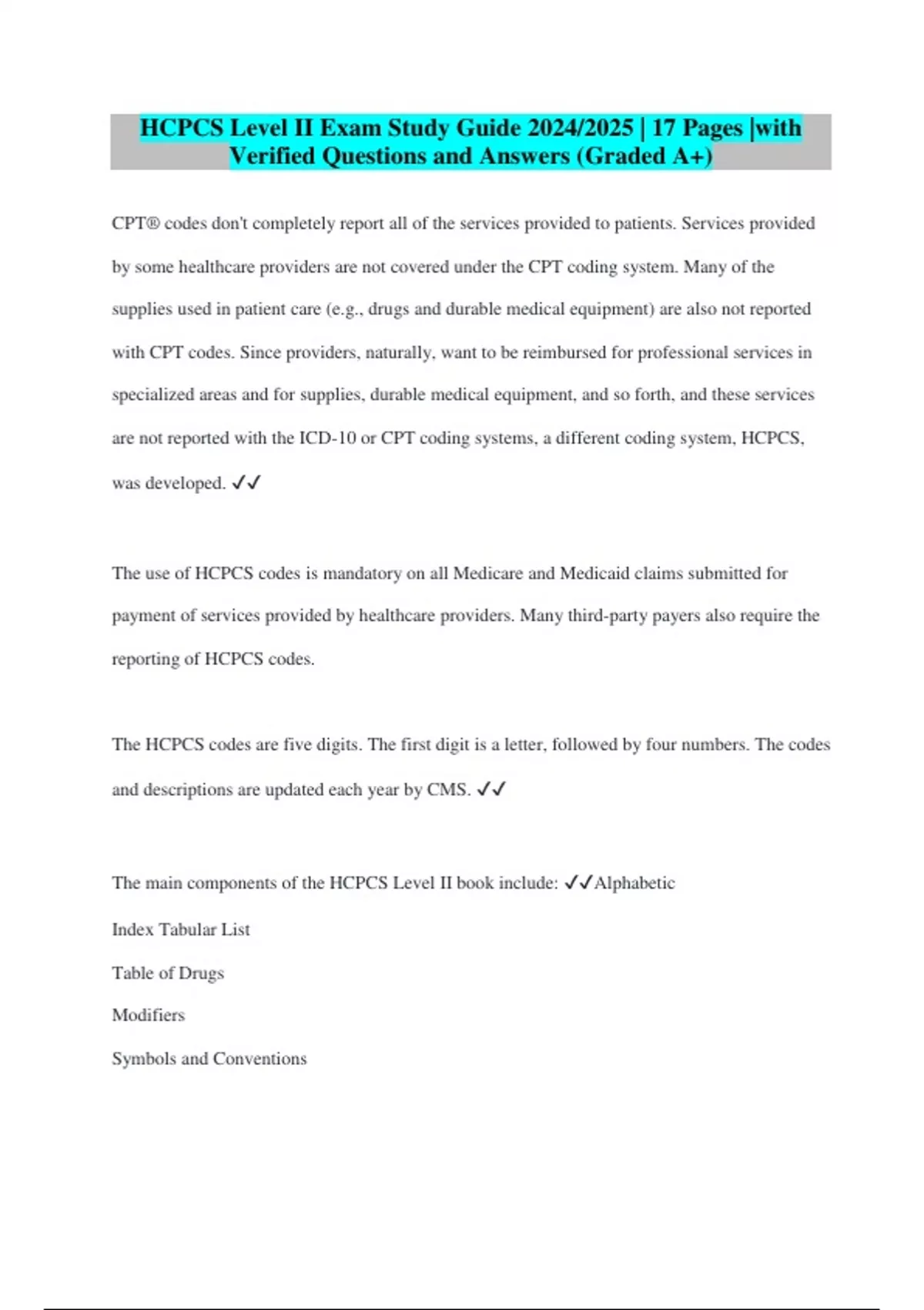 HCPCS Level II Exam Study Guide 2024/2025 | 17 Pages |with Verified Questions and Answers (Graded A+)