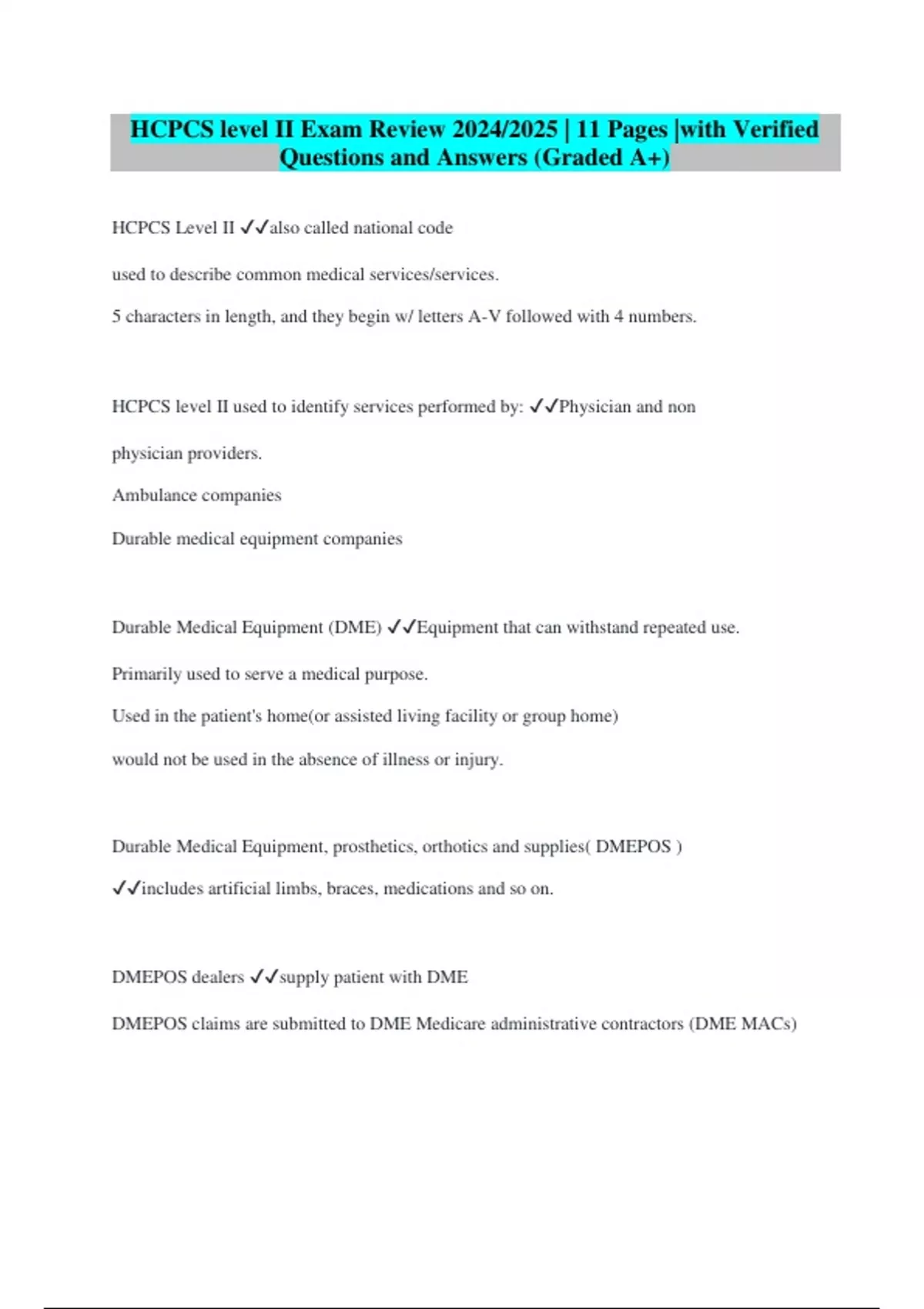 HCPCS level II Exam Review 2024/2025 | 11 Pages |with Verified Questions and Answers (Graded A+)
