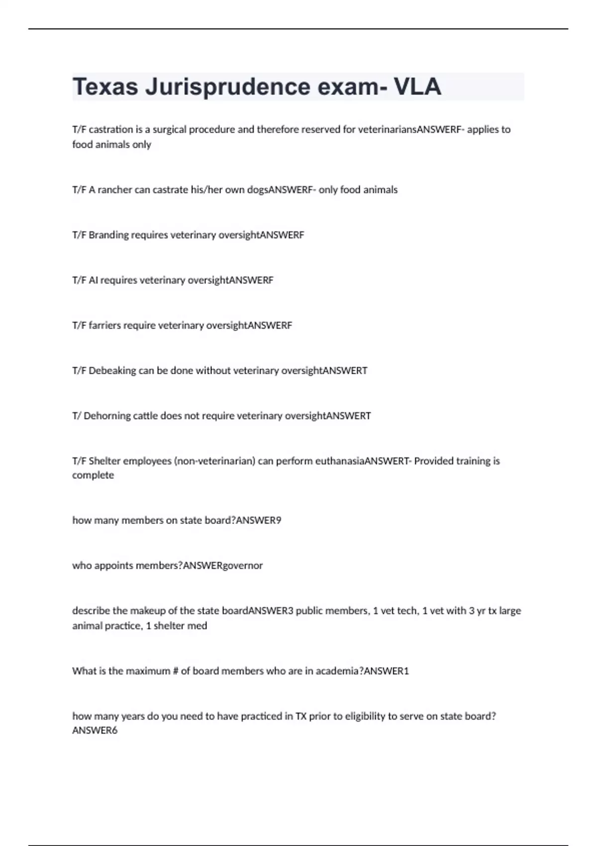 Texas Jurisprudence exam- VLA Questions And Answers (GRADED A+)