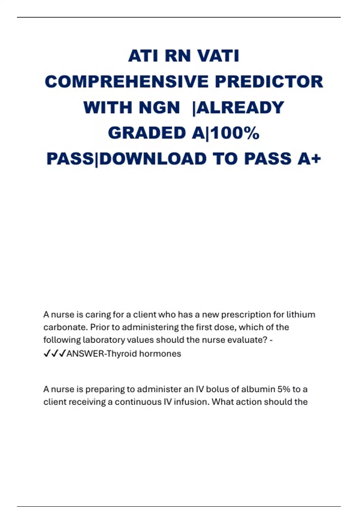 ATI RN VATI COMPREHENSIVE PREDICTOR WITH NGN |ALREADY GRADED A|100% PASS|DOWNLOAD TO PASS A+