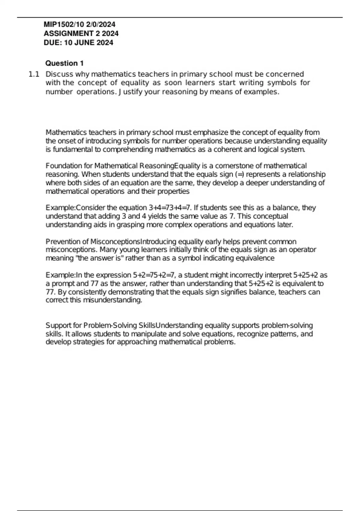 Support for Problem-Solving SkillsUnderstanding equality supports problem-solving