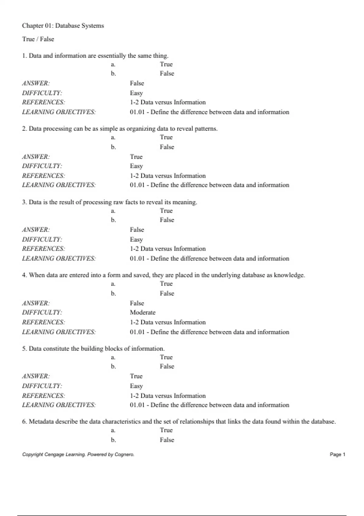 LEARNING OBJECTIVES: 01.01 - Define the difference between data and information