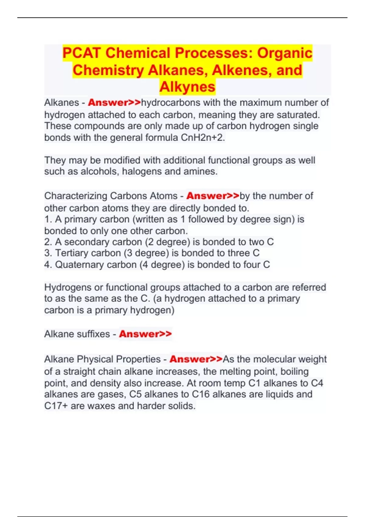 PCAT Chemical Processes: Organic Chemistry Alkanes, Alkenes, and Alkynes