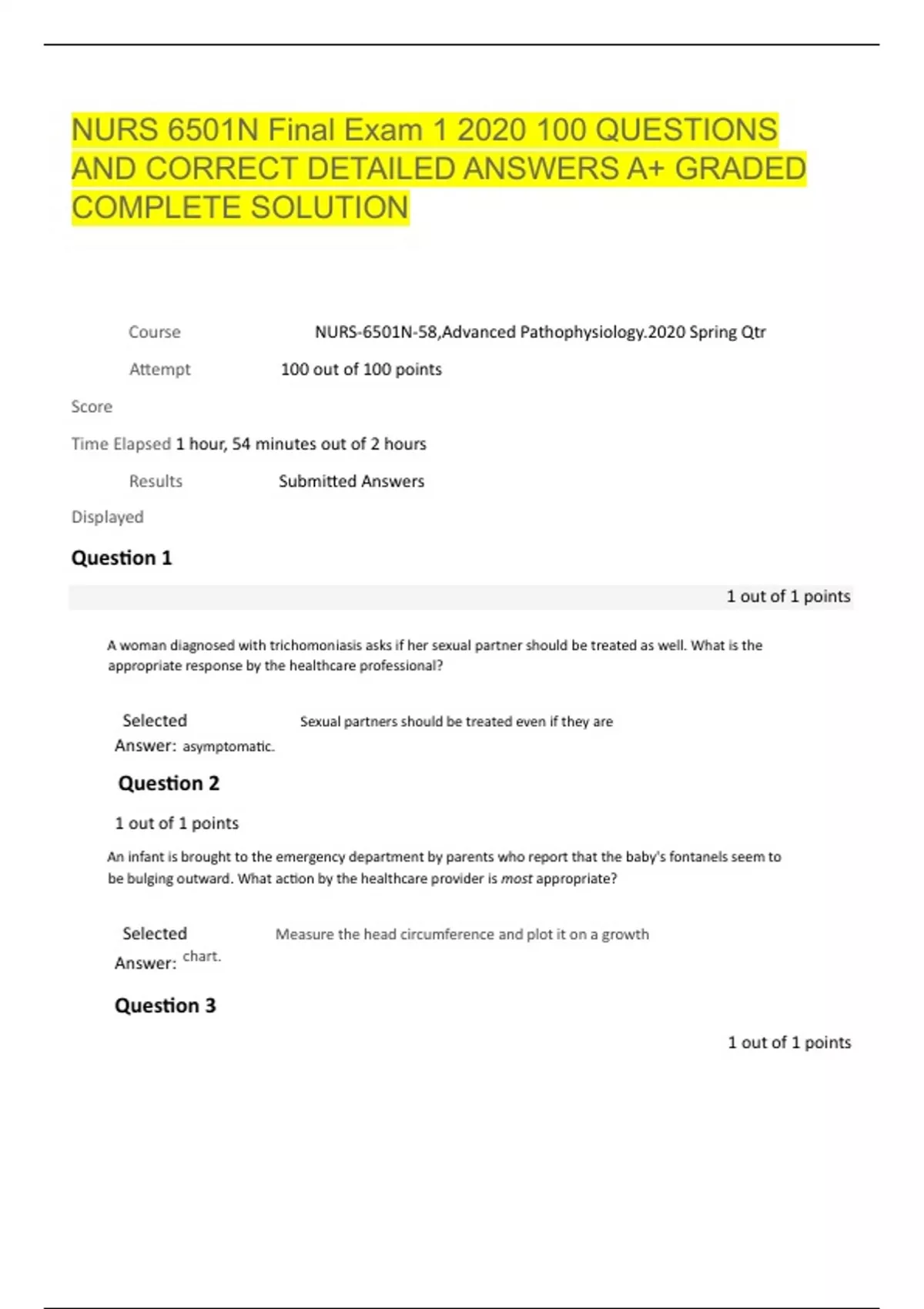 NURS 6501N Final Exam QUESTIONS AND CORRECT DETAILEDANSWERS A+ GRADED COMPLETE SOLUTION
