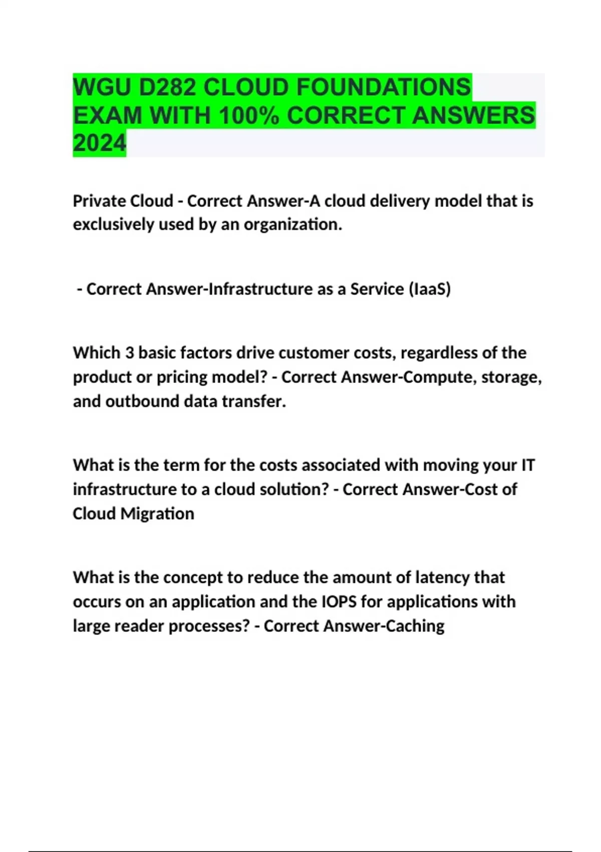 WGU D282 CLOUD FOUNDATIONS EXAM WITH 100% CORRECT ANSWERS 2024