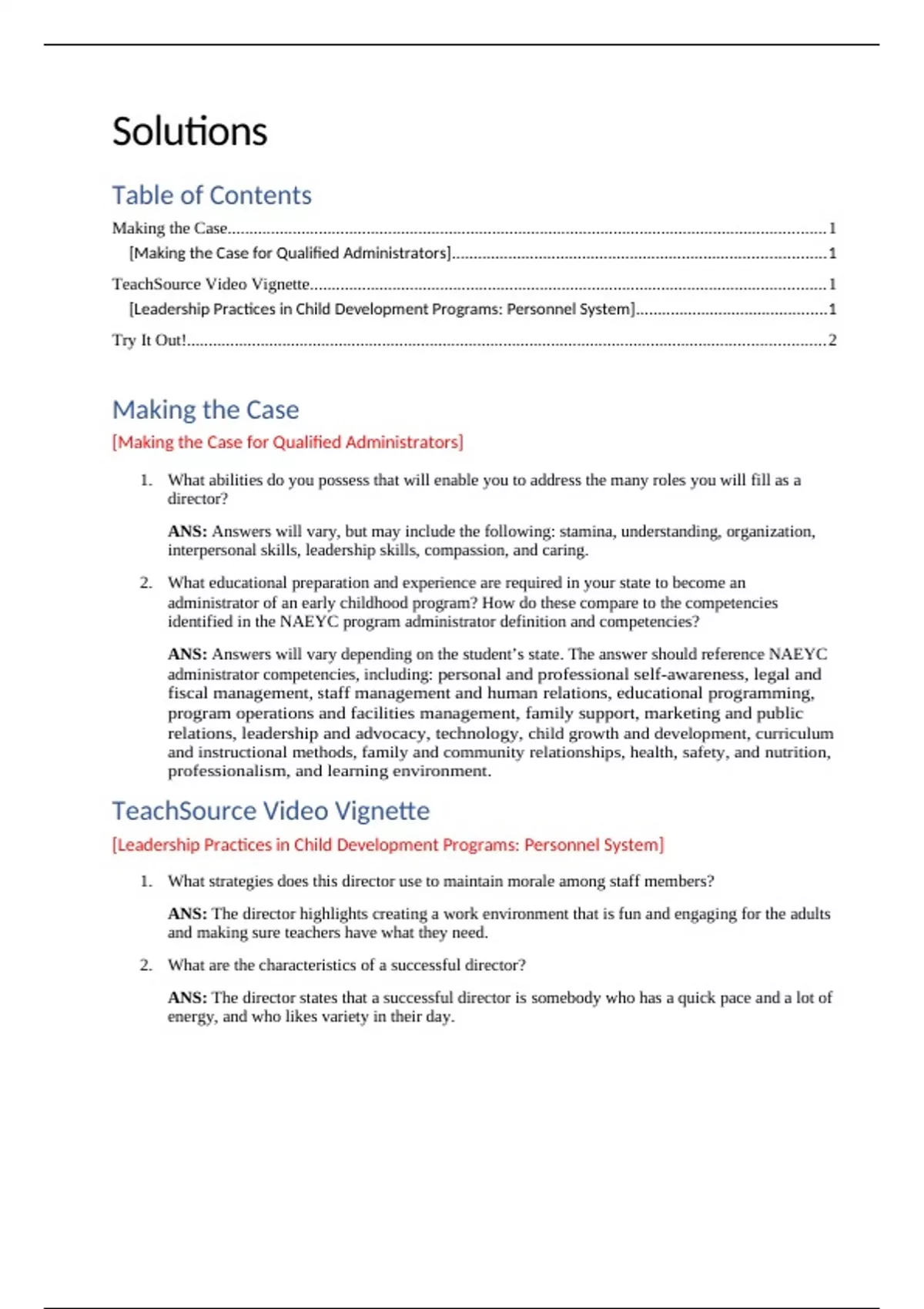 , Solution and Answer Guide: Adams/Kronberg/Donley, Developing and Administering Early Childhood Education Programs, 978-0-3575-1320-