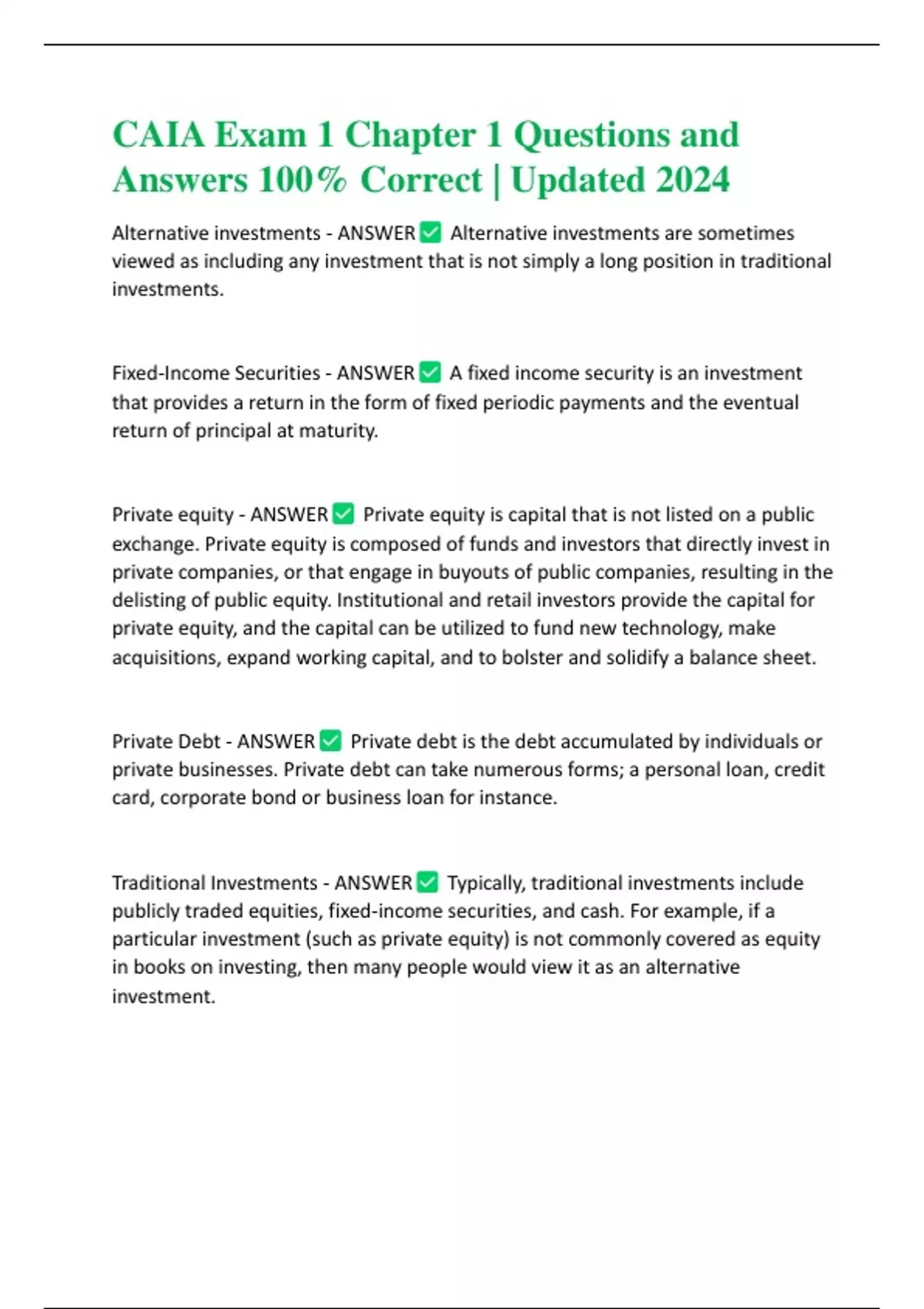 CAIA Exam 1 Chapter 1 Questions and Answers 100% Correct | Updated 2024