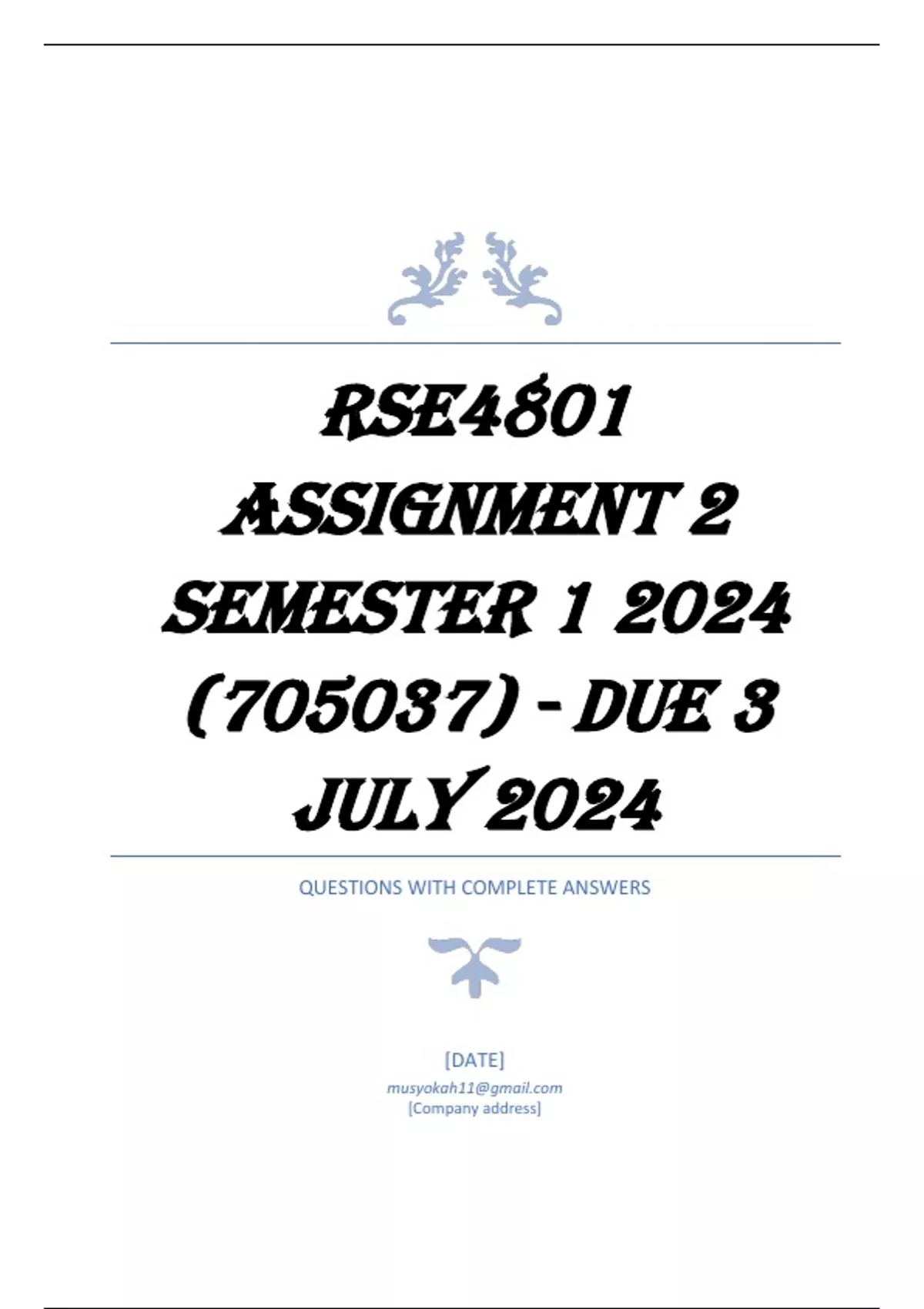 , RSE4801 Assignment 2 Semester 1 2024 (705037) - DUE 3