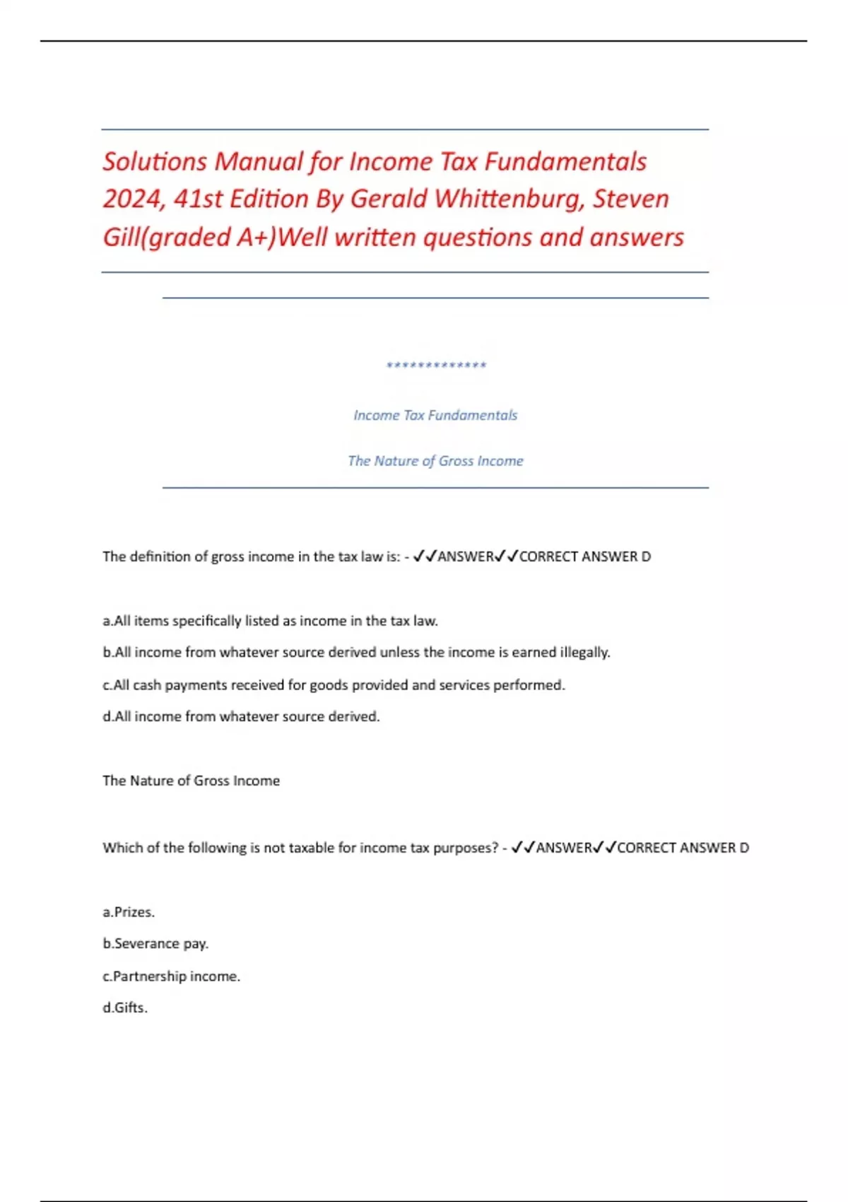 Solutions Manual for Income Tax Fundamentals 2024.