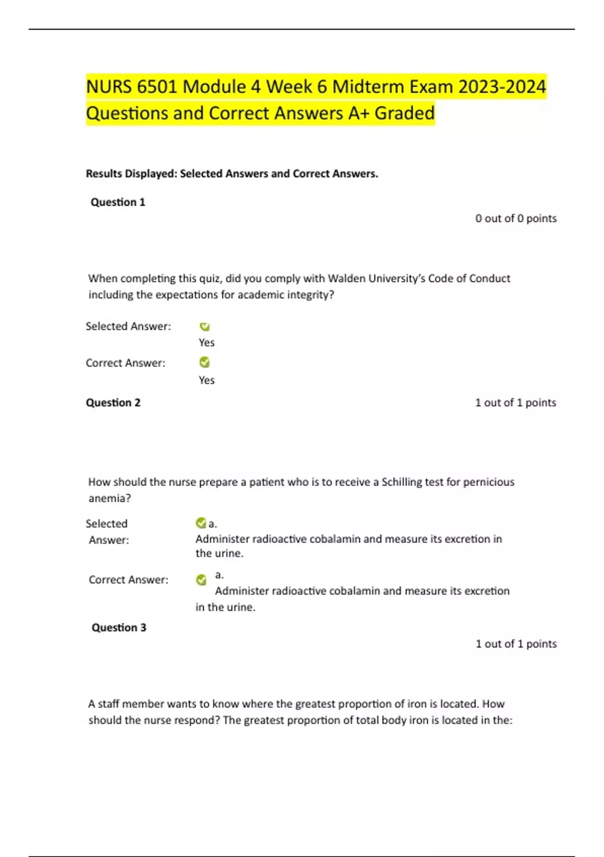 NURS 6501 Module 4 Week 6 Midterm Exam Questions and CorrectAnswers A+ Graded