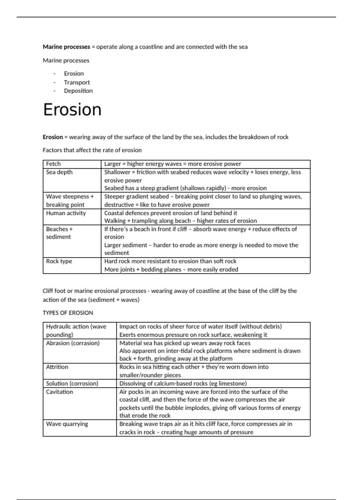 Erosion = wearing away of the surface of the land by the sea, includes the breakdown of rock